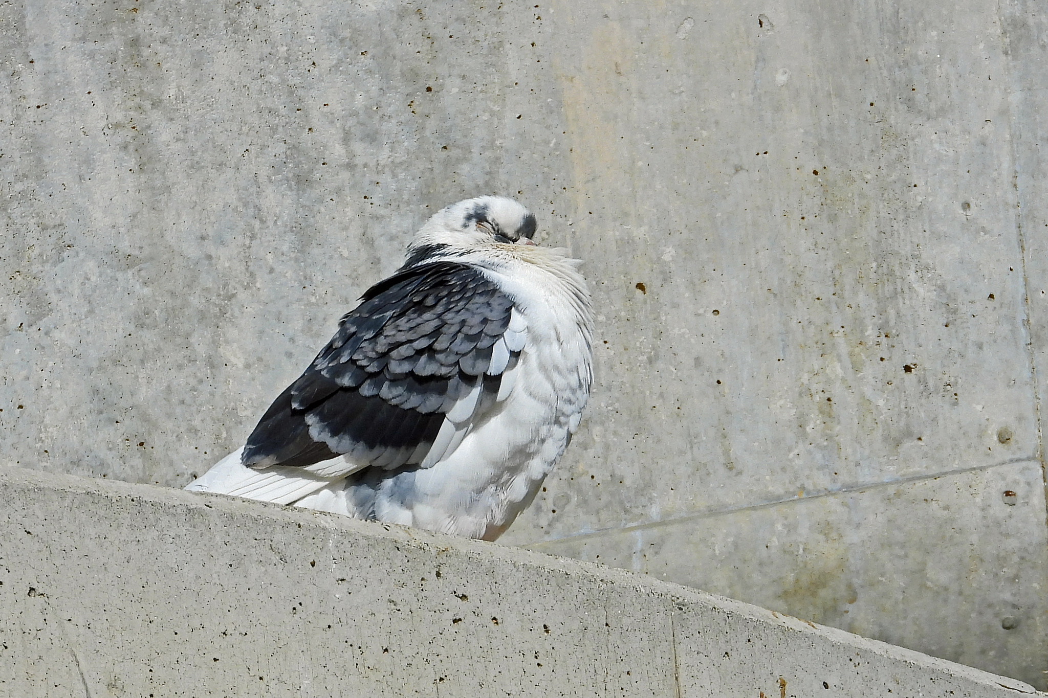 おっ、「ドバト」が並んでる中に、以前紹介した白い「ドバト」が居ました。