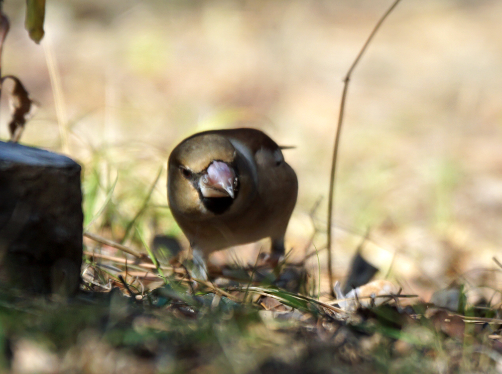 シメがヒョイと目の前に降りてきて、しきりに何やら小さな物を食べていました。