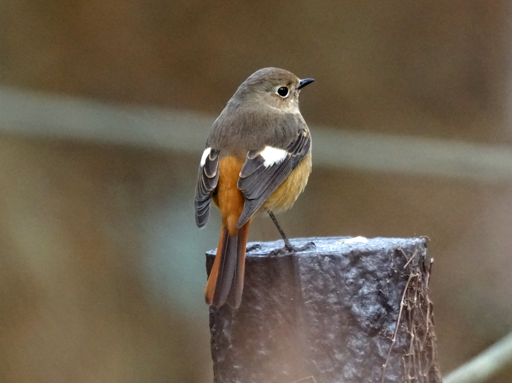 ジョウビタキがすぐ近くの杭に。 可愛い~。