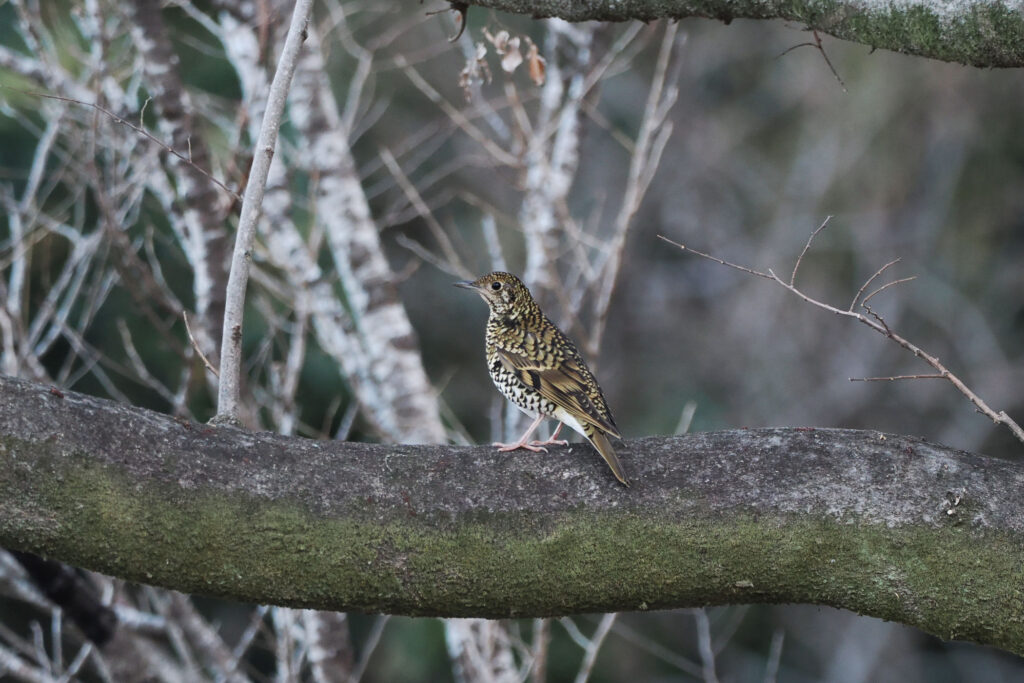 歩いていると木の枝にトラツグミ!!