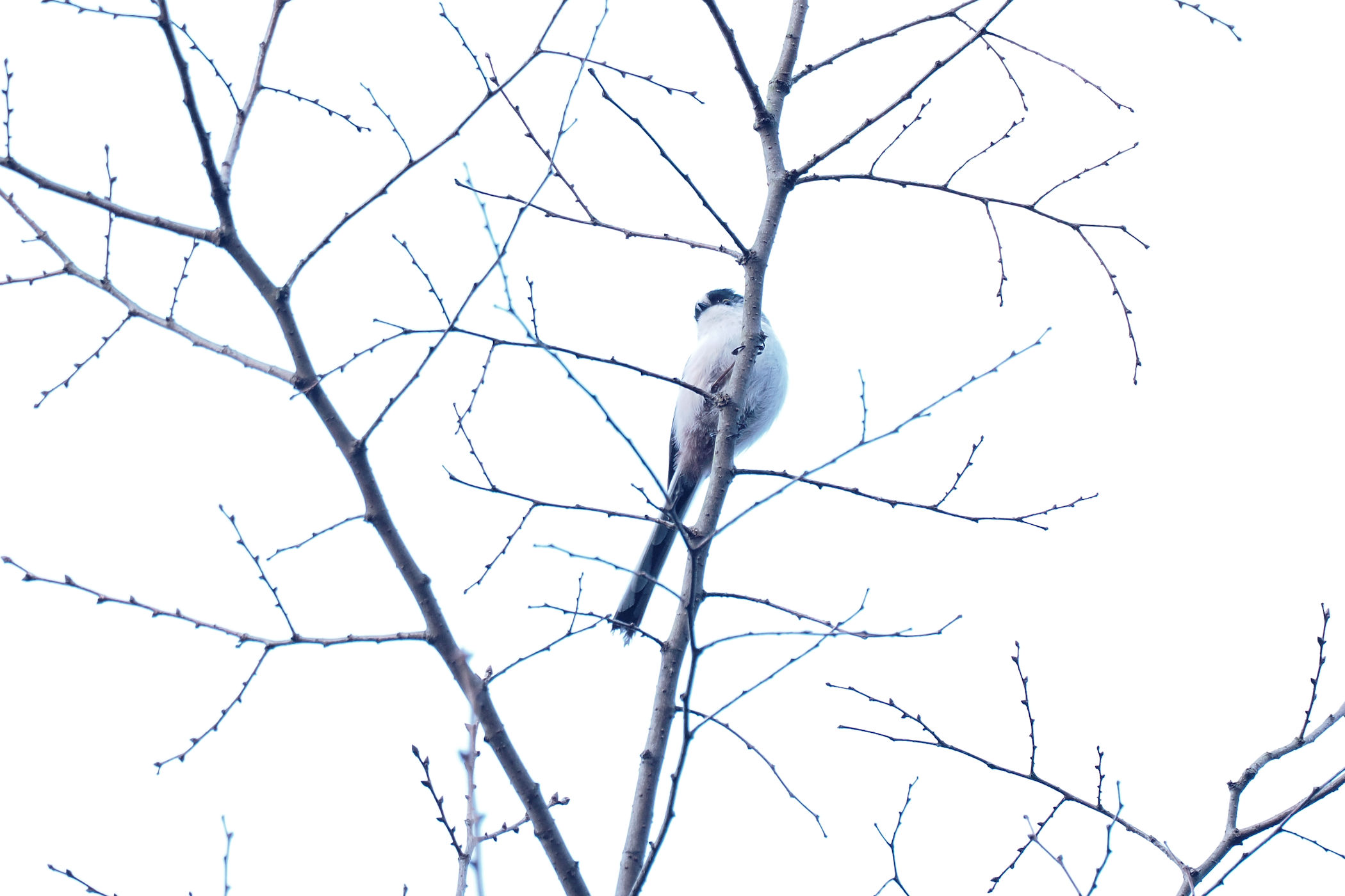 真上の木の枝に止まったエナガさん