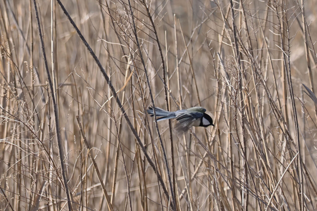 河原の葦原ではシジュウカラさんが