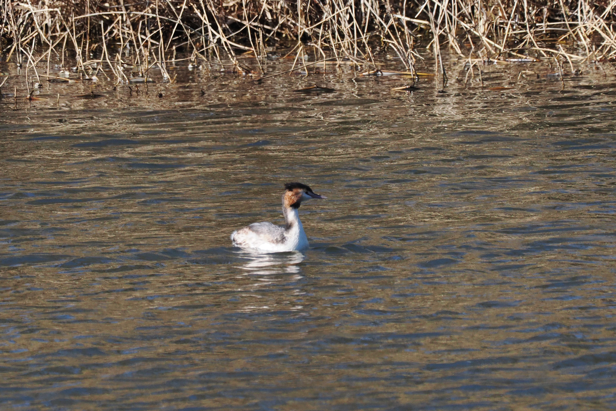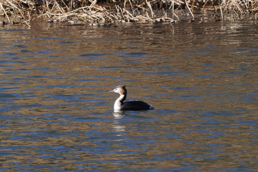 今日はカンムリカイツブリさんが