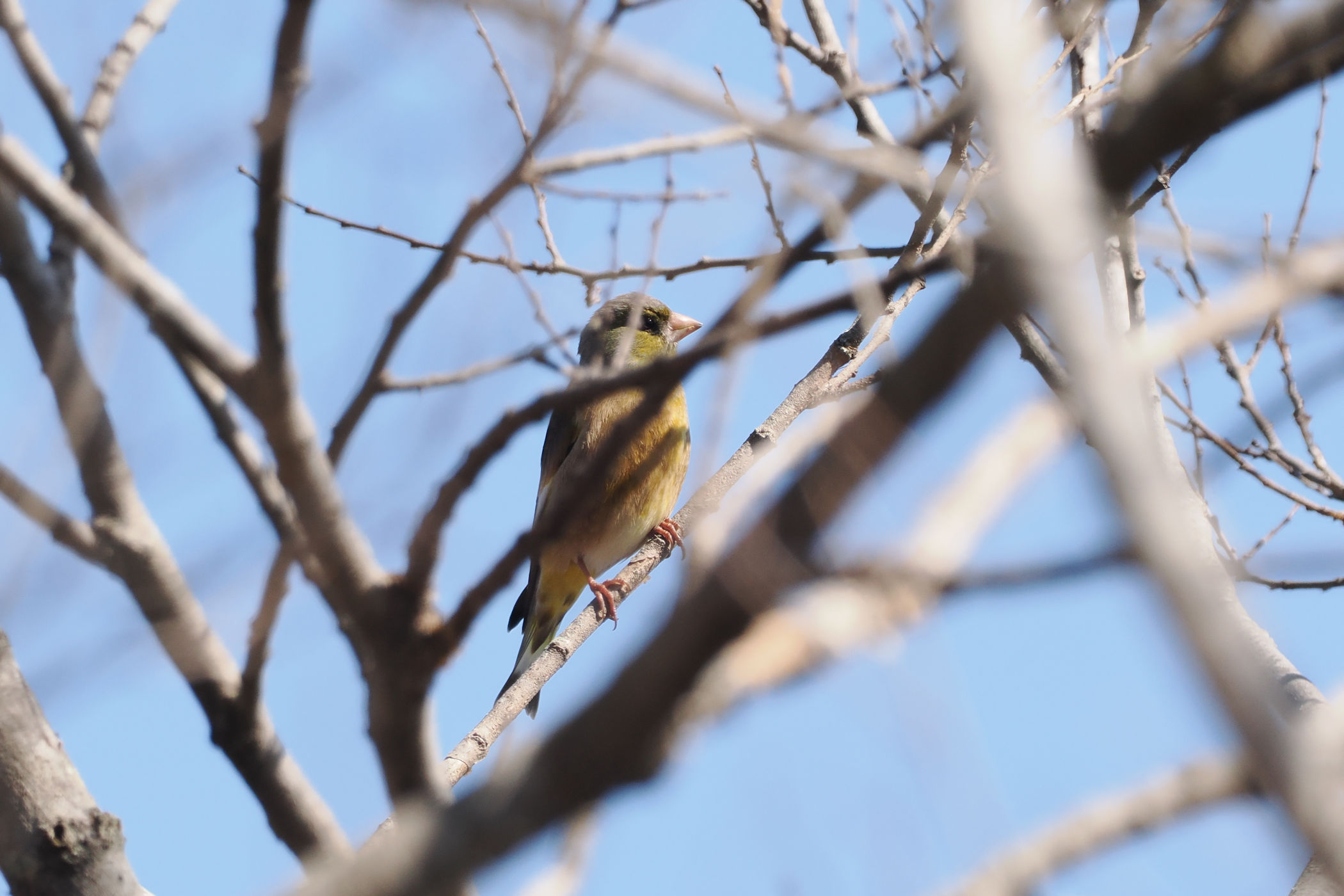 いた…と思ったらカワラヒワさんでした