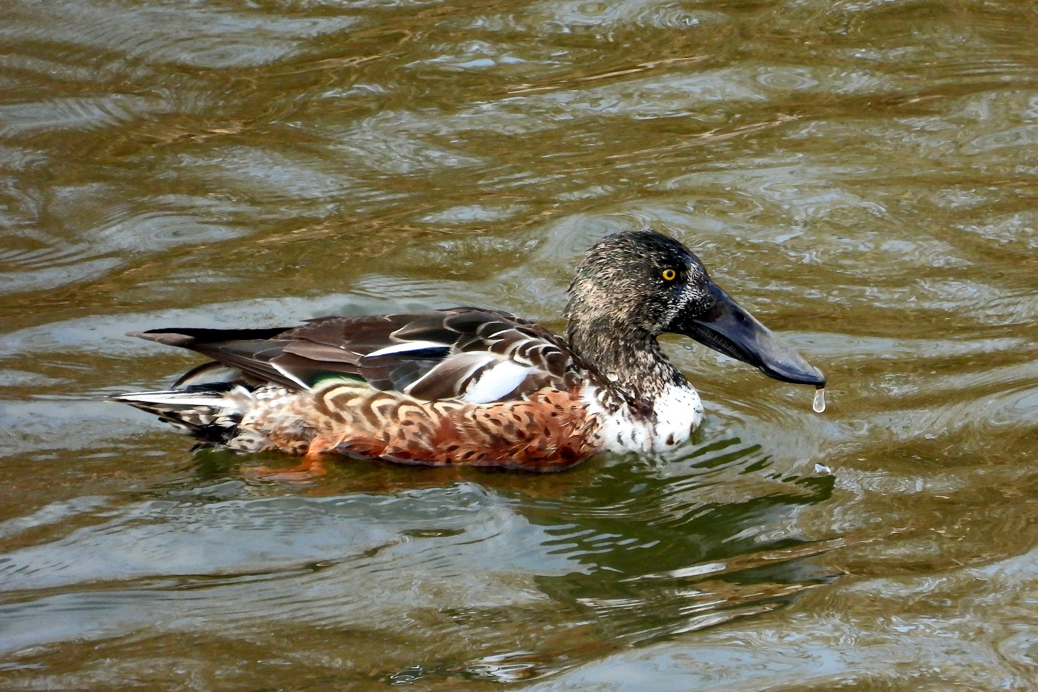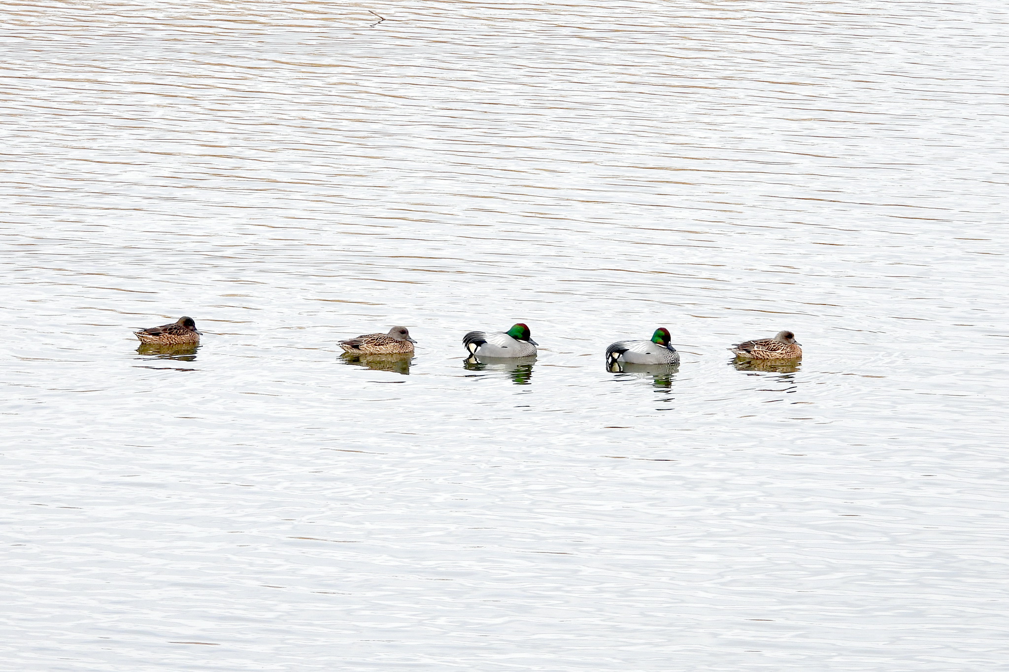 おっ、「マガモ」と「カルガモ」の交雑種らしきのが、