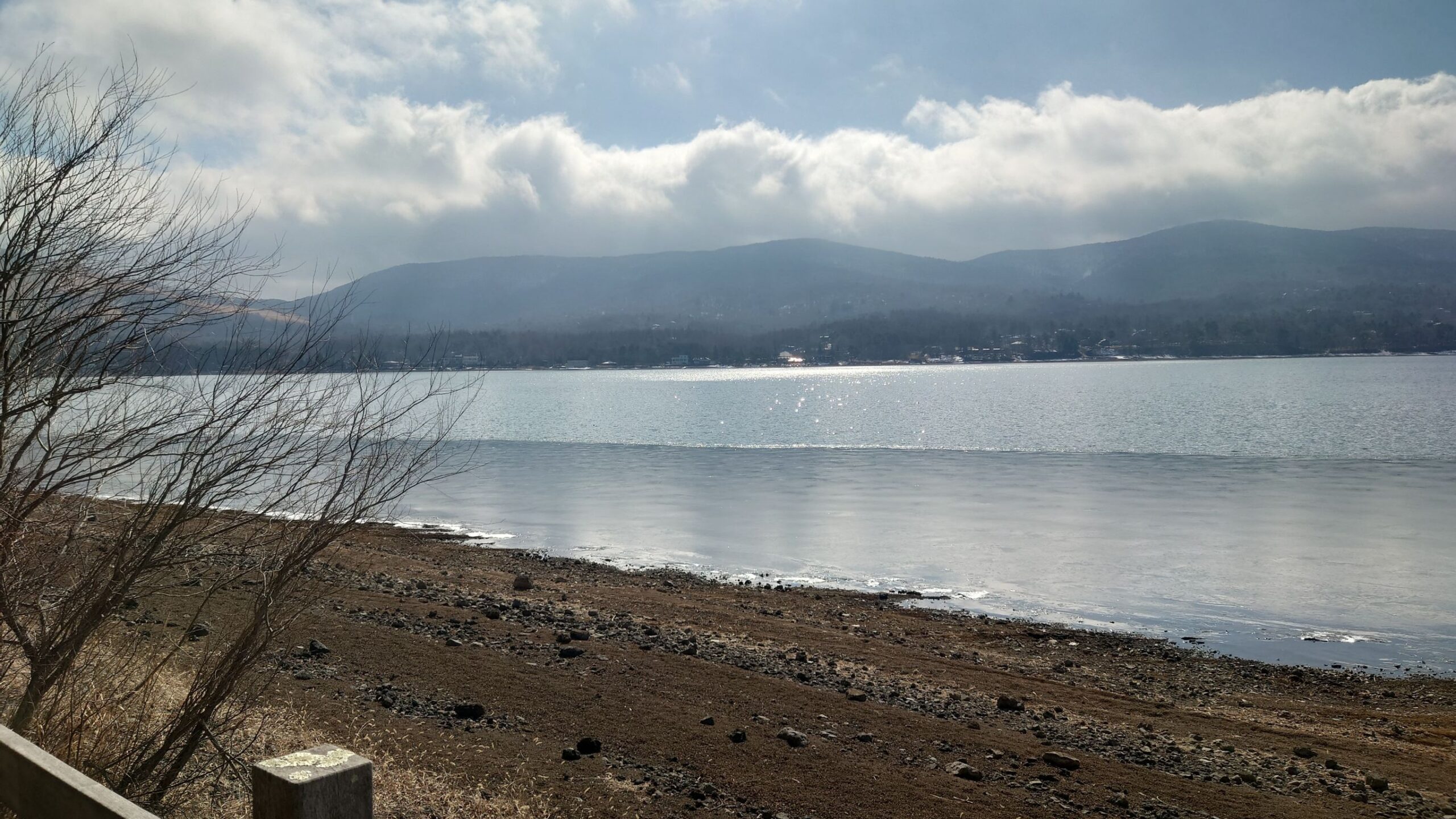 湖に境が見えますが手前が凍ってます