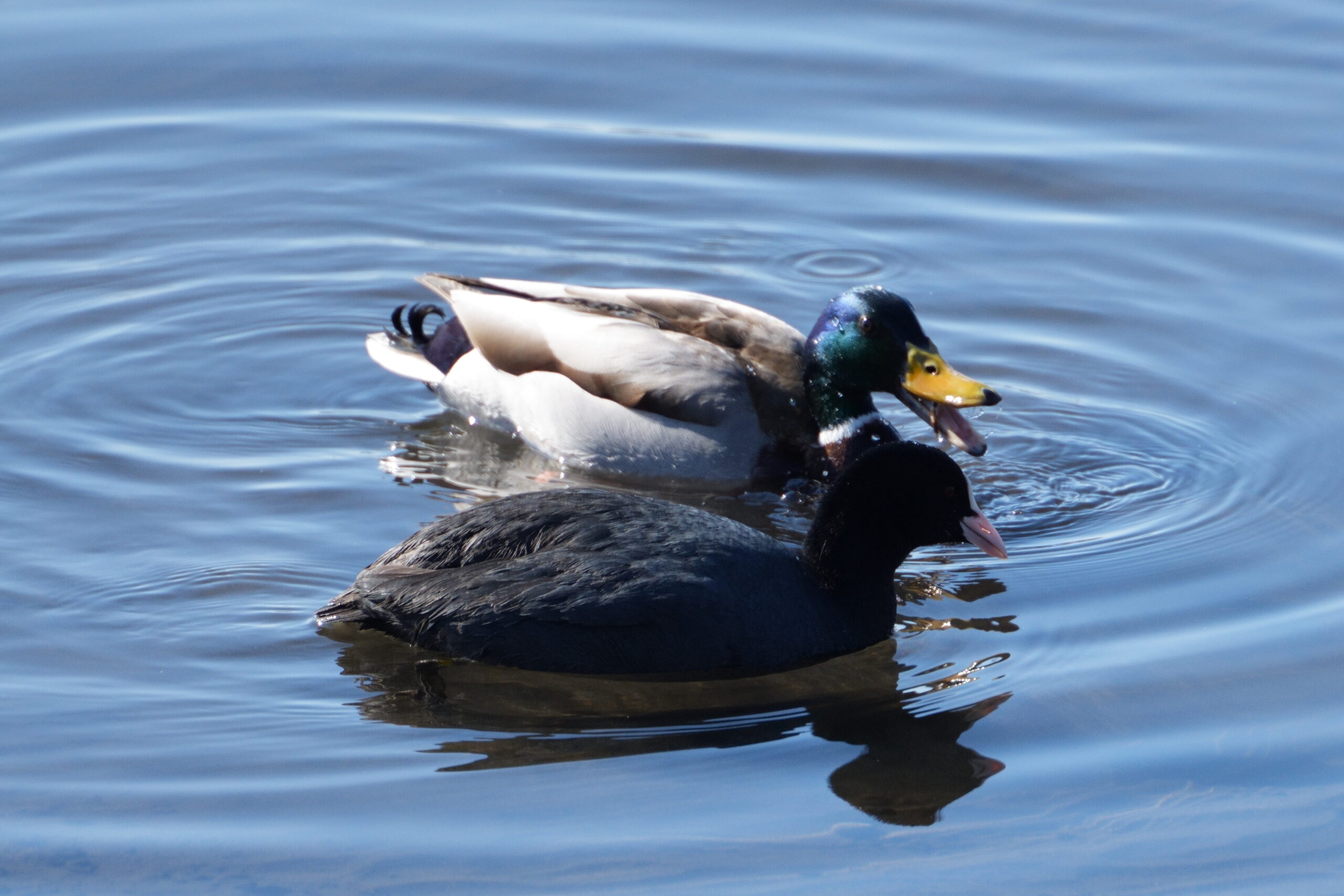 マガモとオオバン