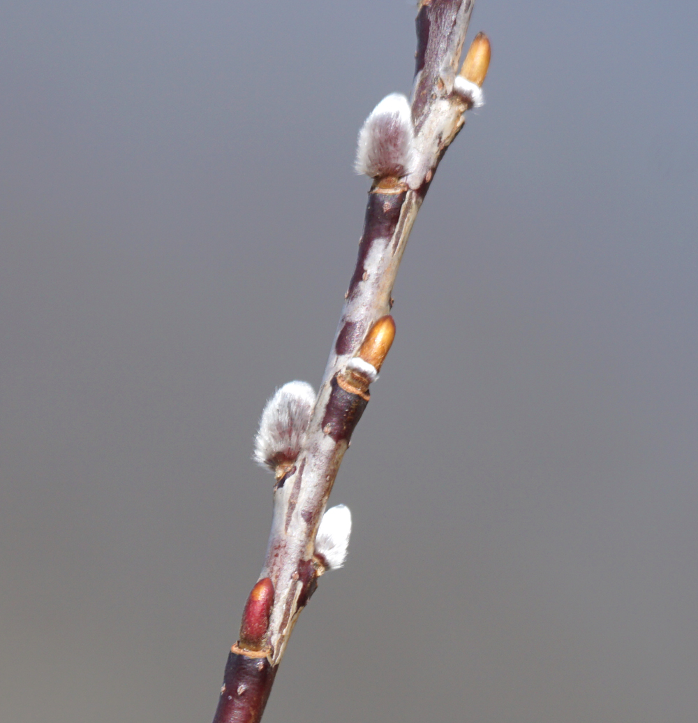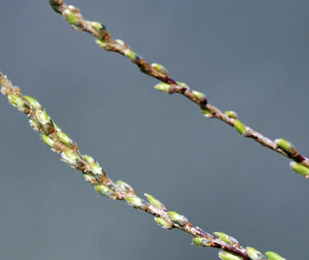 タチヤナギは、芽鱗が落ちて、黄緑の新芽が見えてきました。