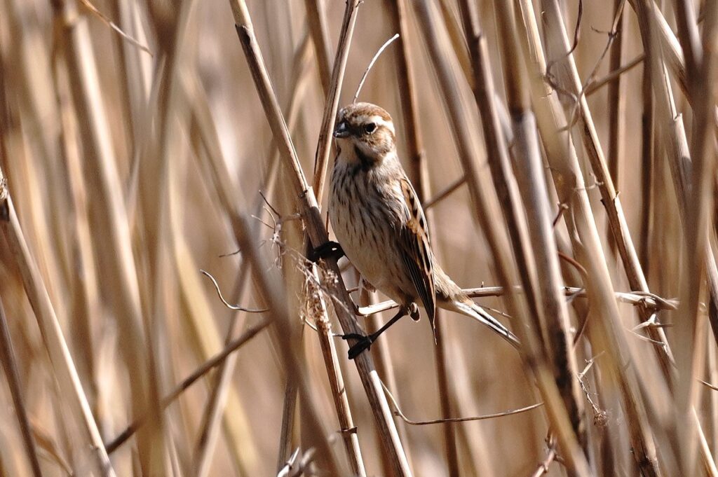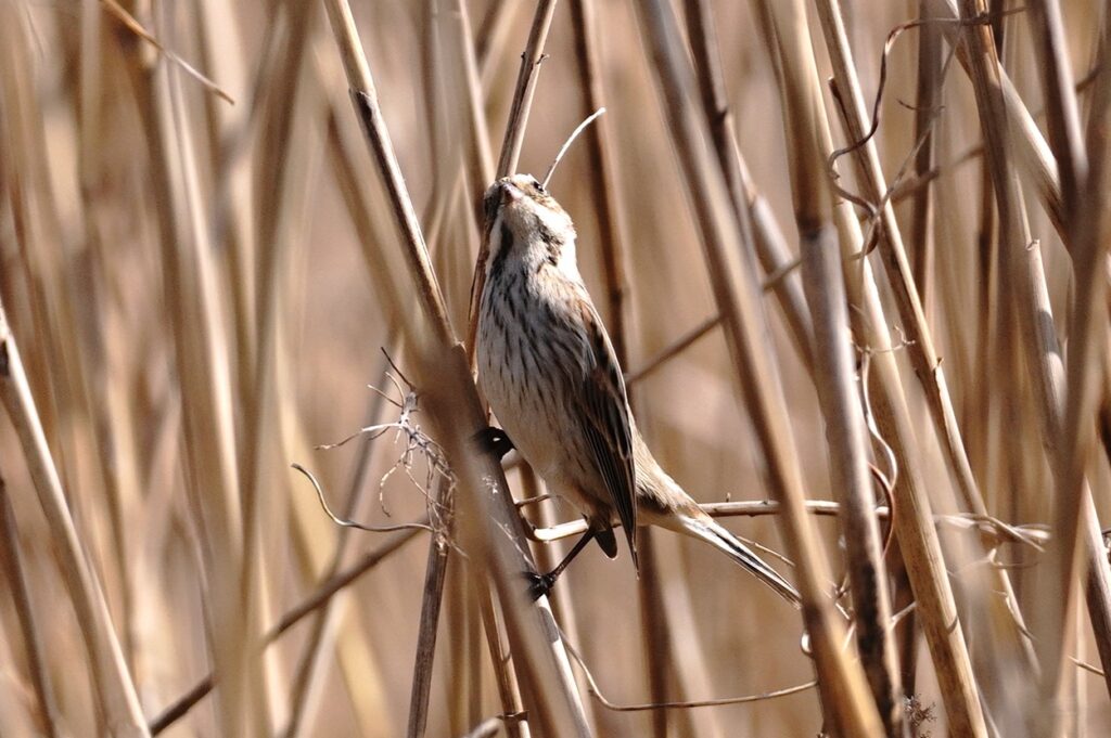 オオジュリン 冬鳥 今日で2月も終わりだというのにやっと会えました