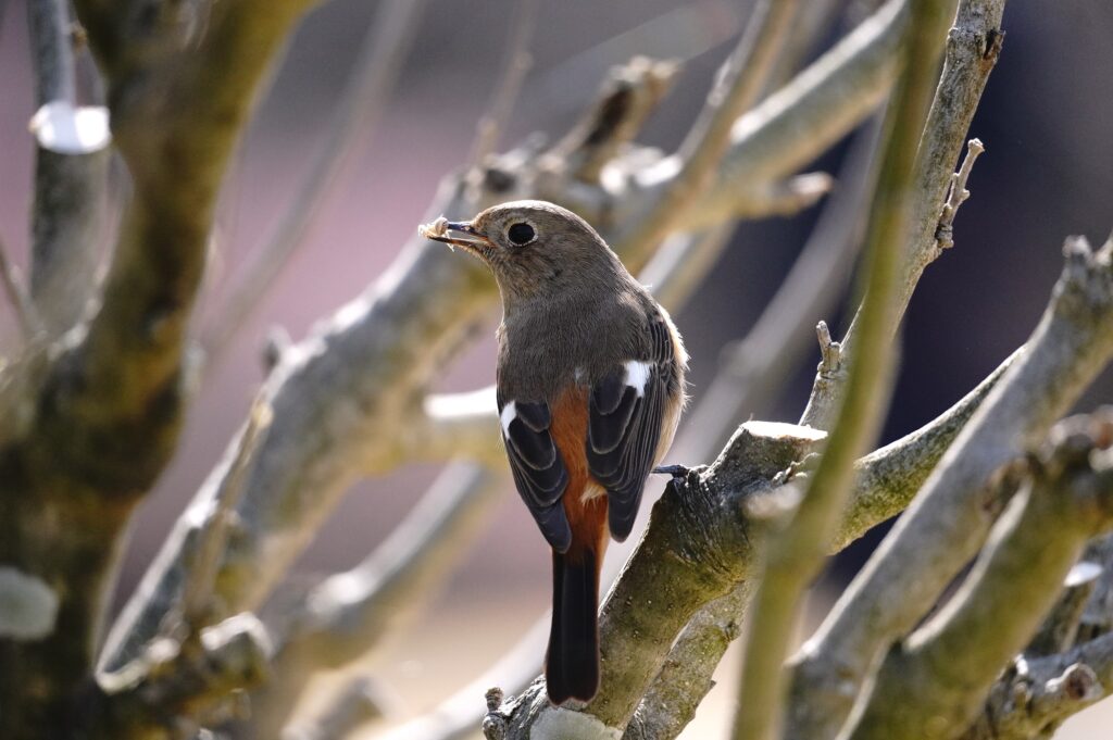 ジョウビタキ♀ 何か捕らえていました