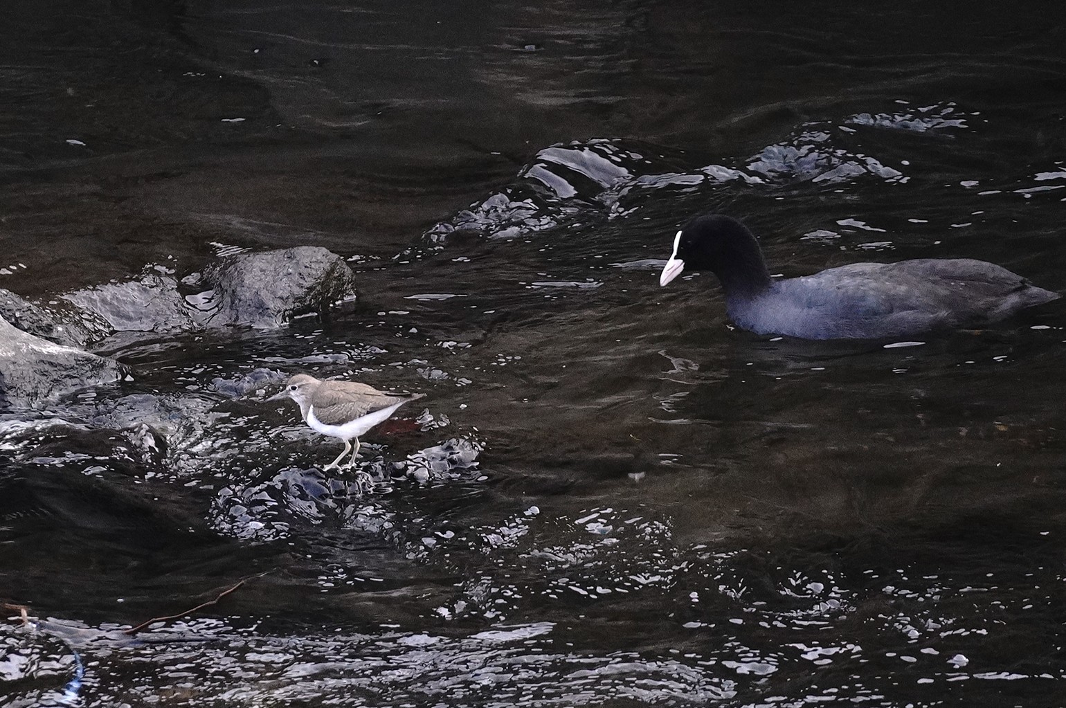 イソシギと オオバン(冬鳥)