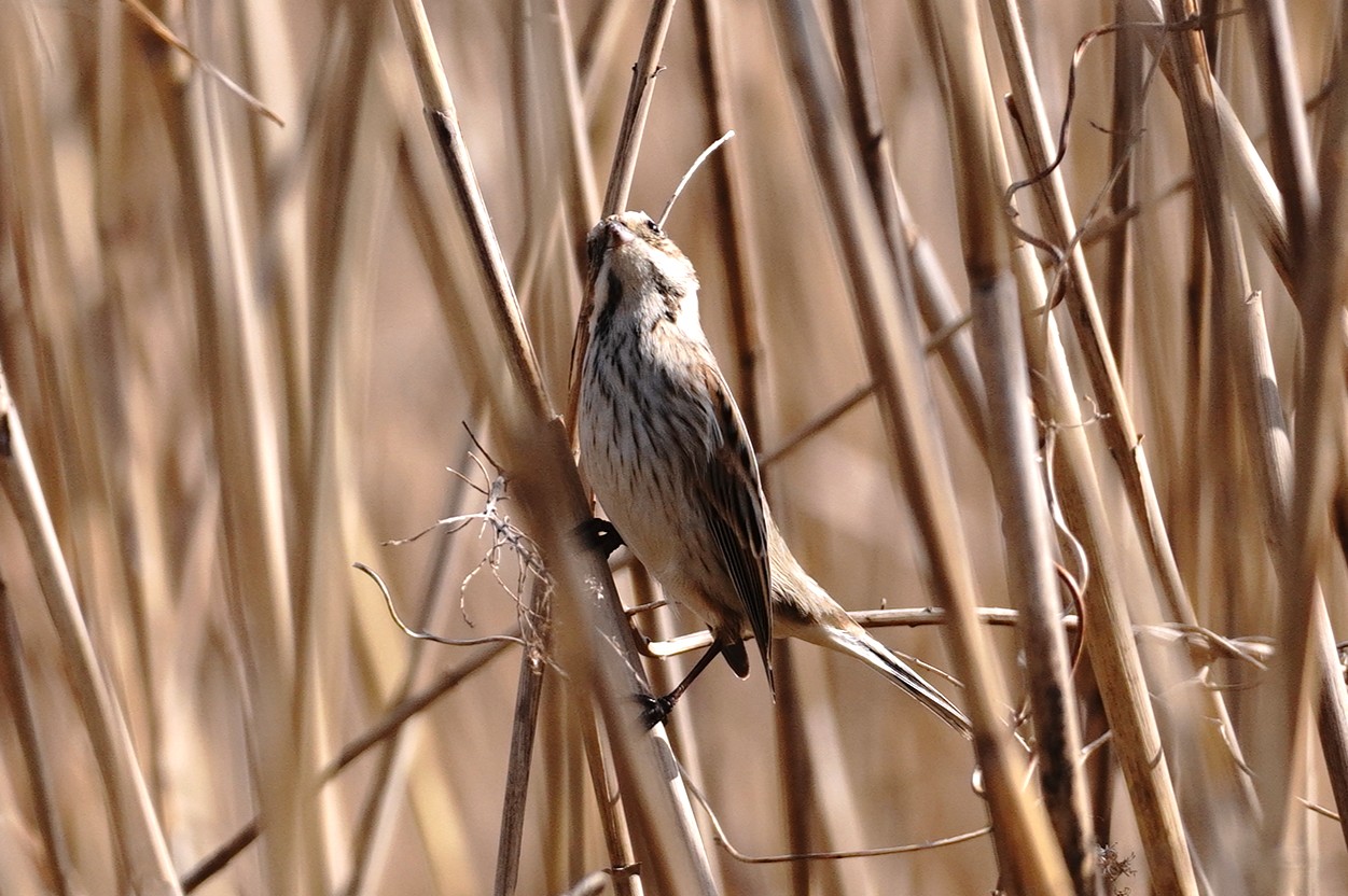 オオジュリン 冬鳥 今日で2月も終わりだというのにやっと会えました
