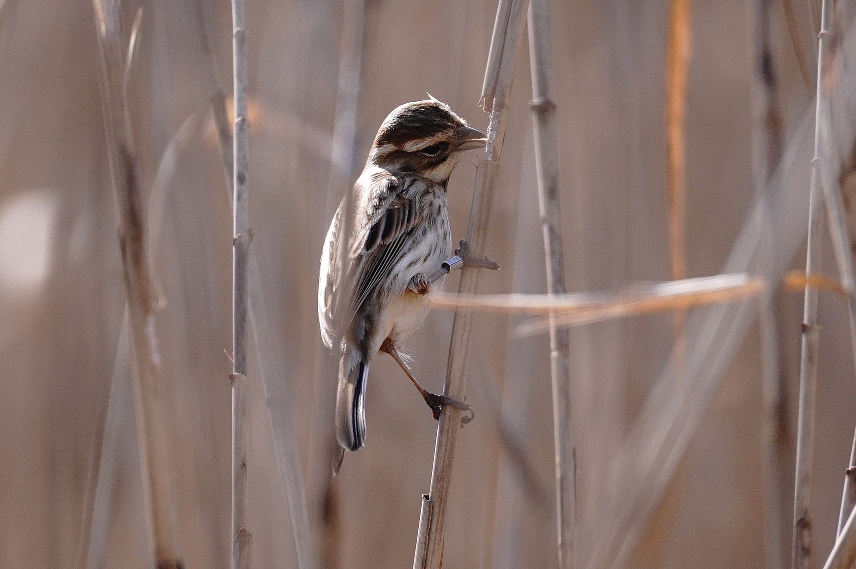 このオオジュリンは、右足に足輪が付けられていました
