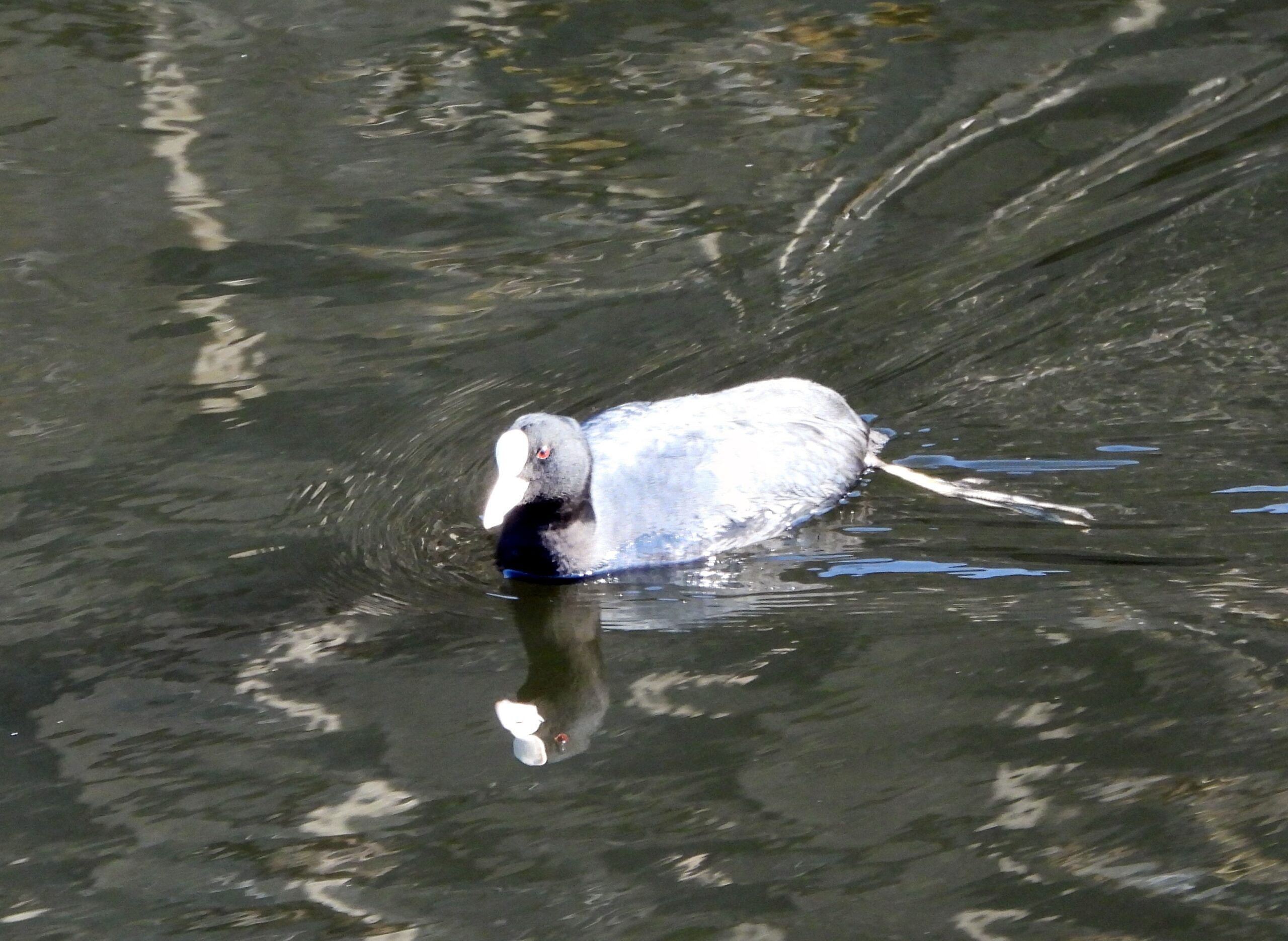 柏尾川の方にはカワウの群れが飛び、水面ではオオバンとカワウがスイスイ