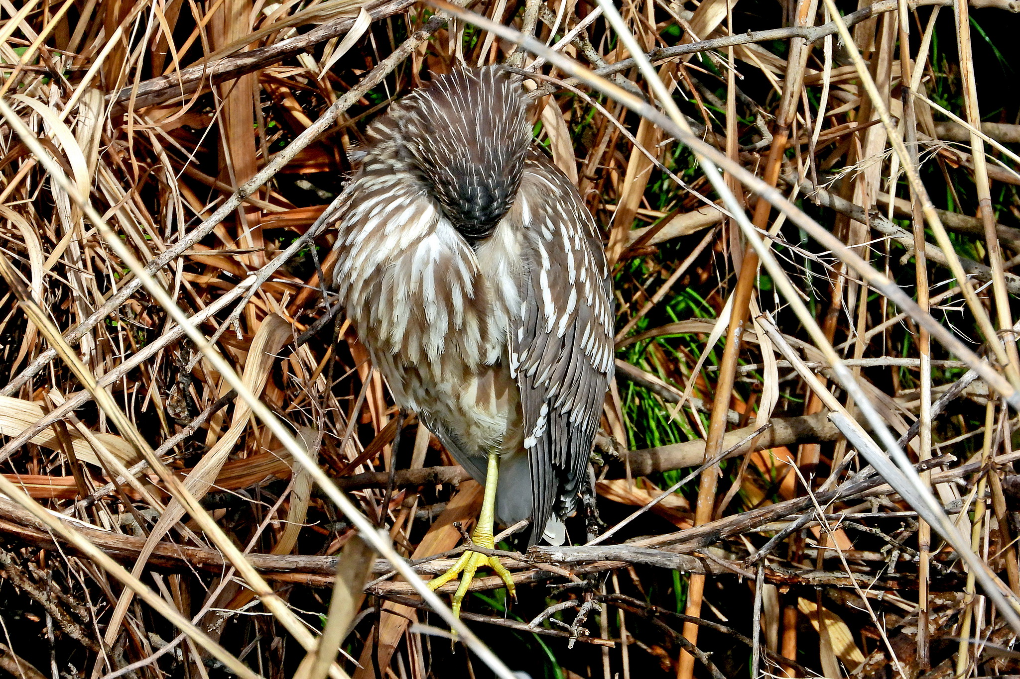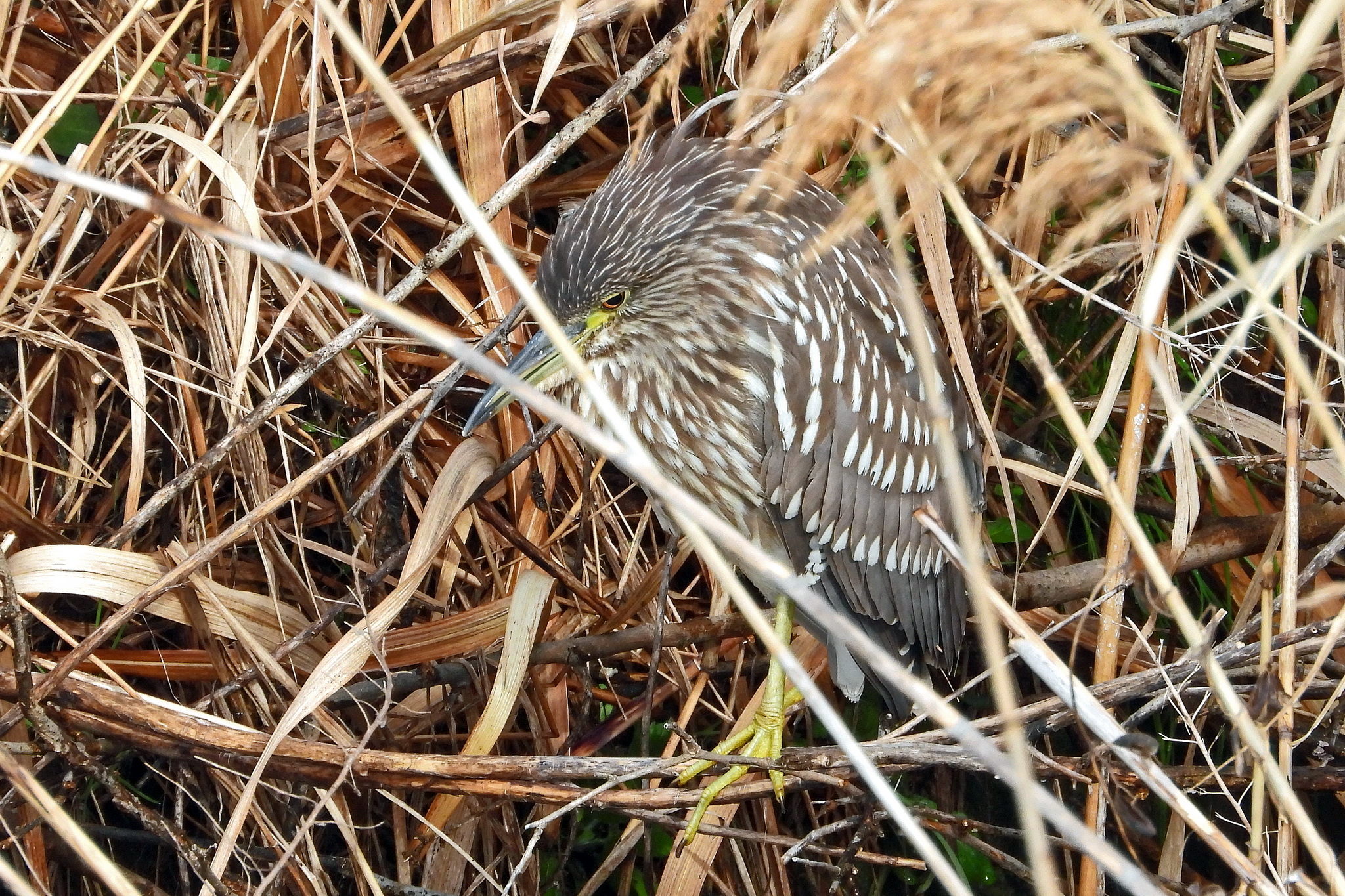 おっ、「ゴイサギ」の幼鳥「ホシゴイ」が、いつもの所に居た。