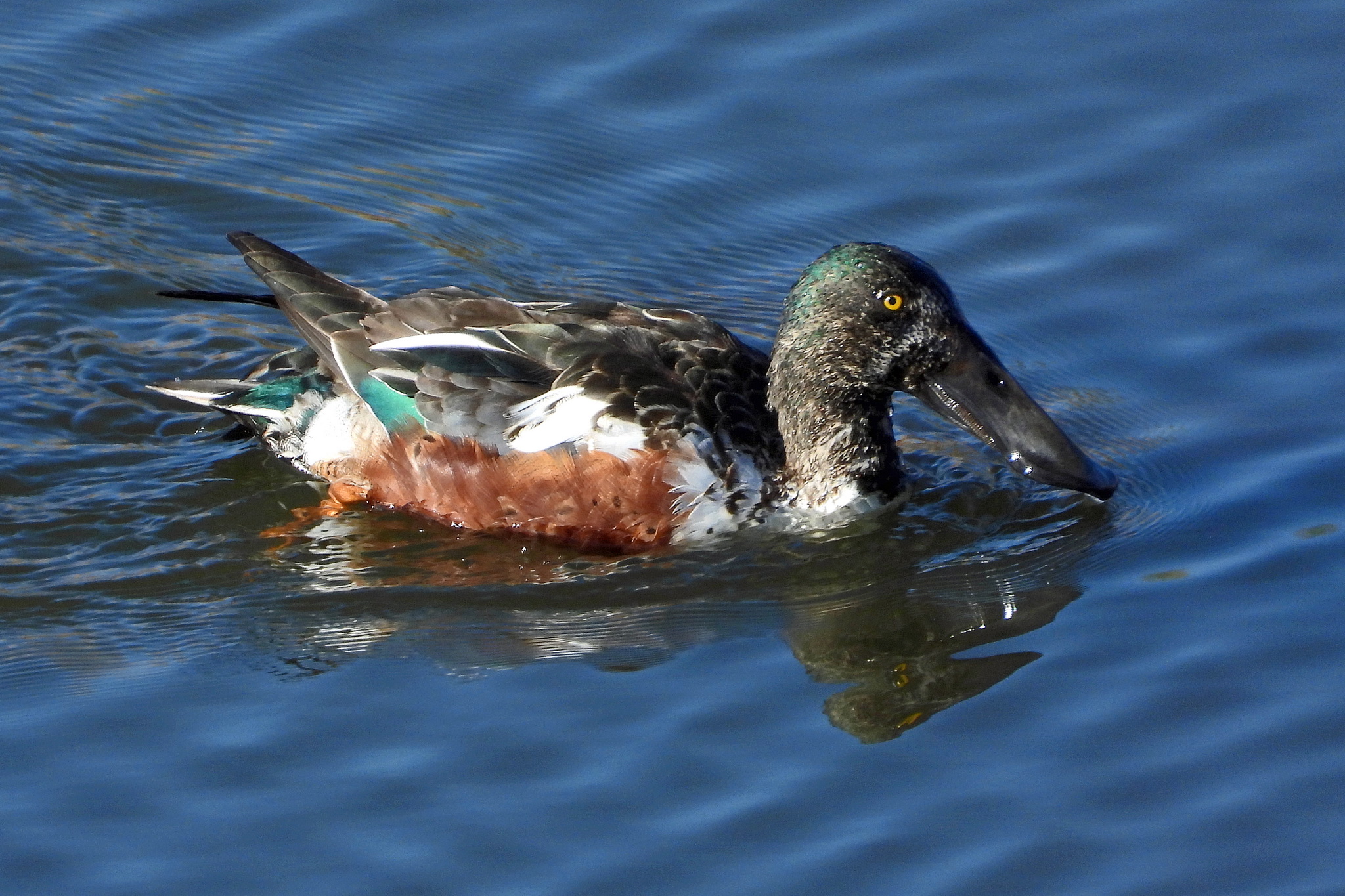 お馴染みの、何かちょっと気になる換羽中「ハシビロガモ」です。