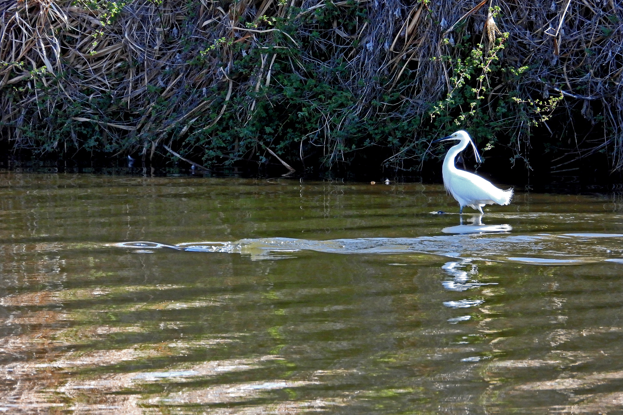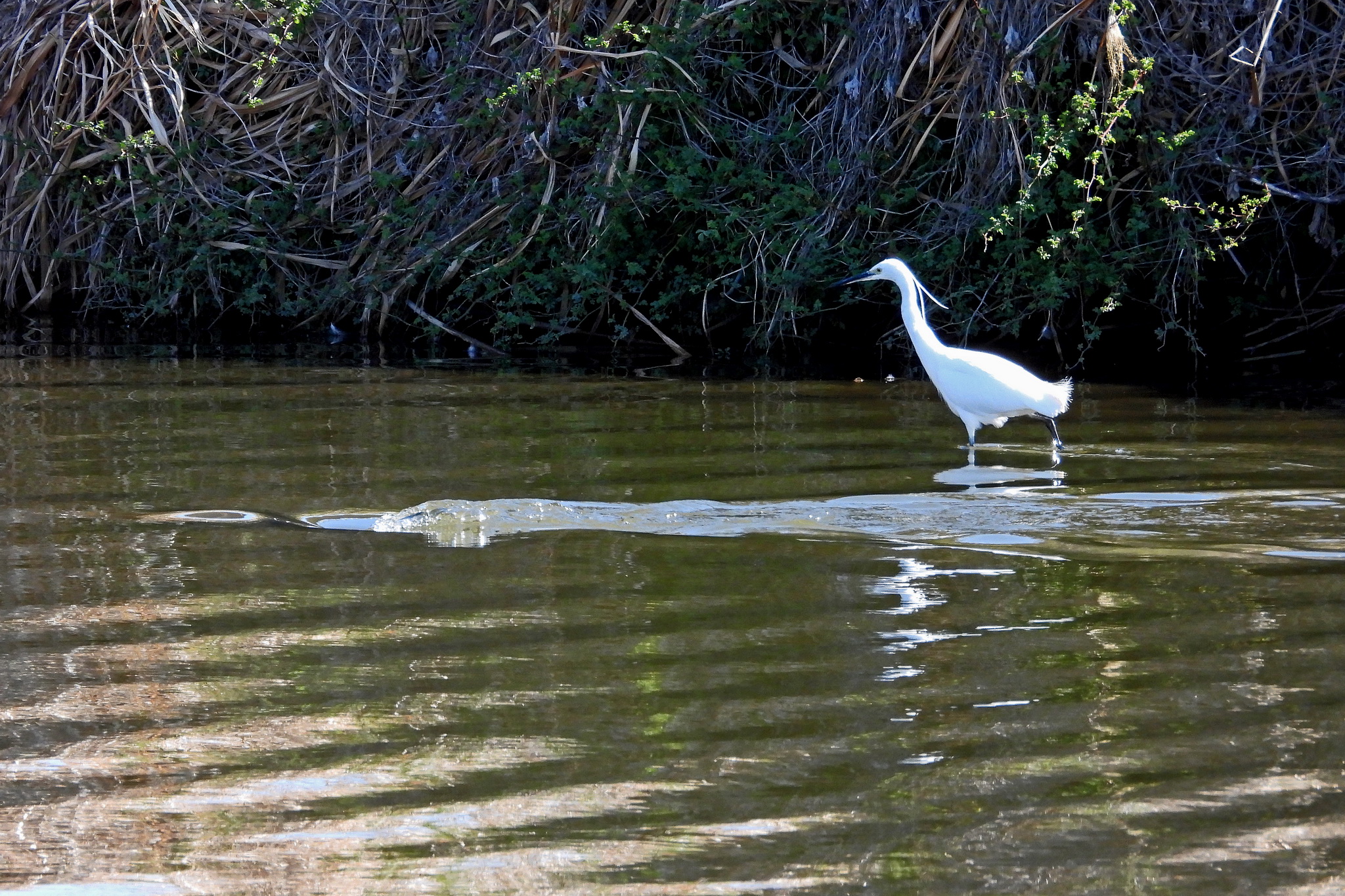 「コサギ」が「コイ」を追いかけ始めました。