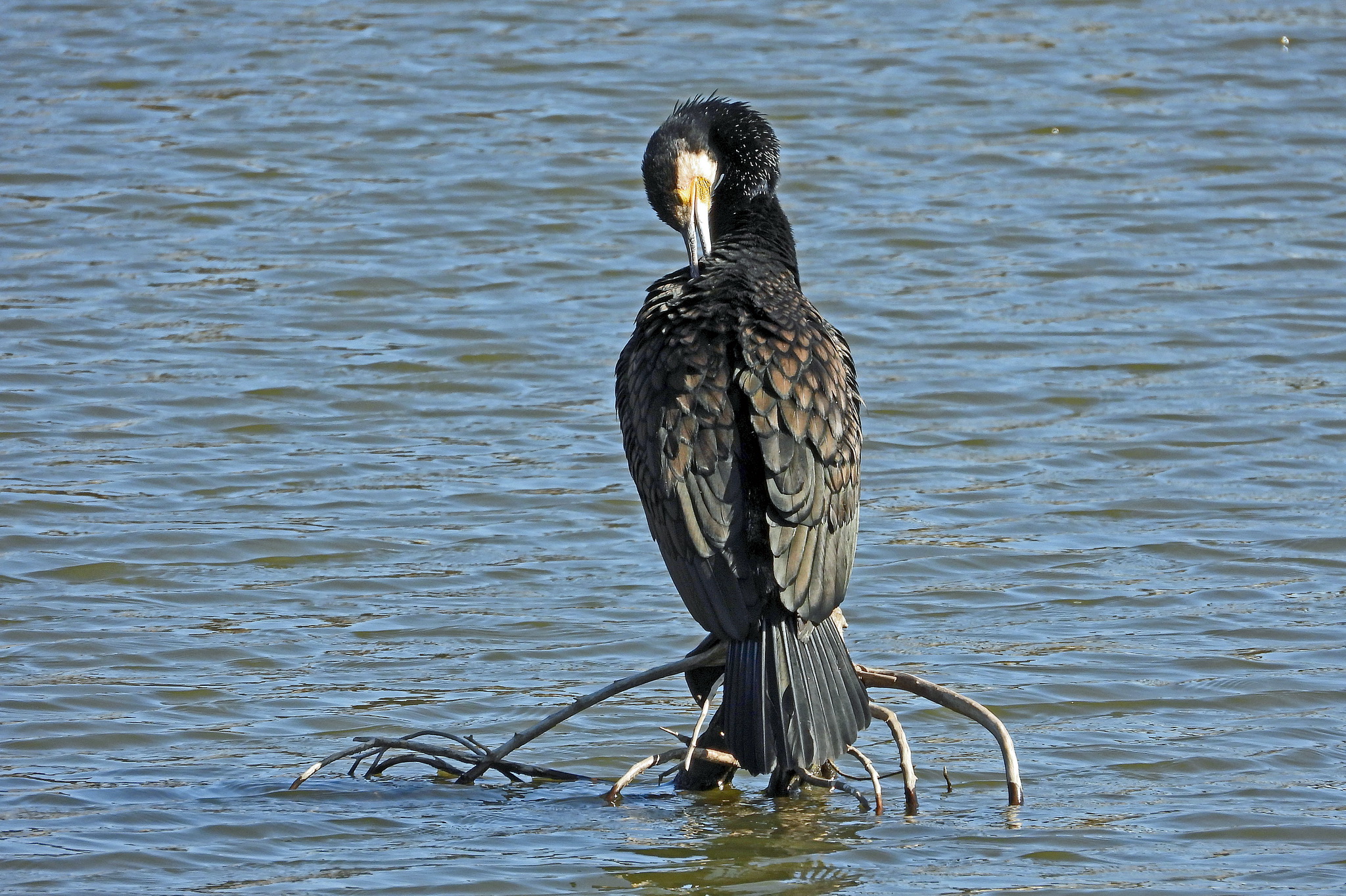 「カワウ」が羽繕いしてました。