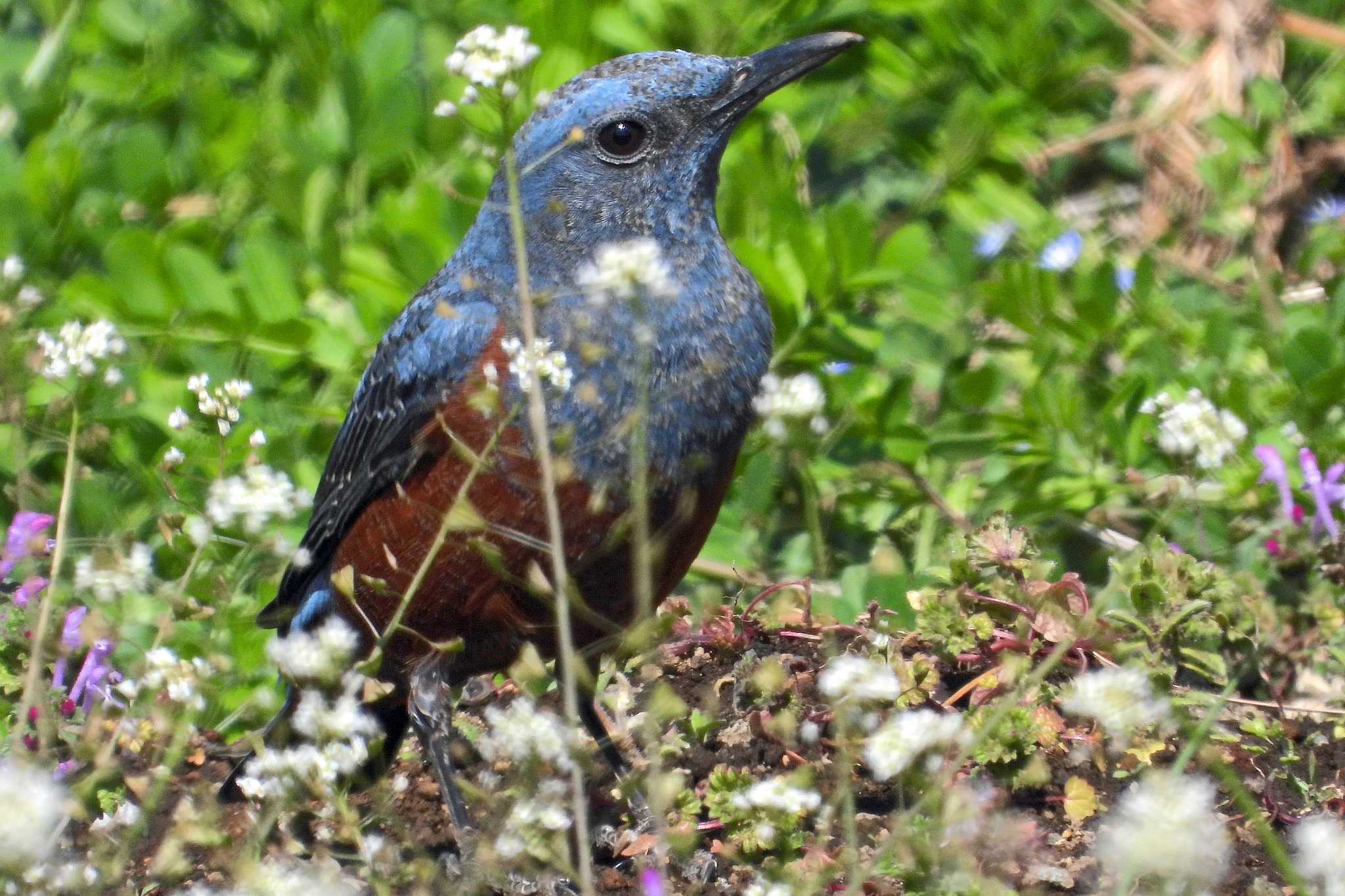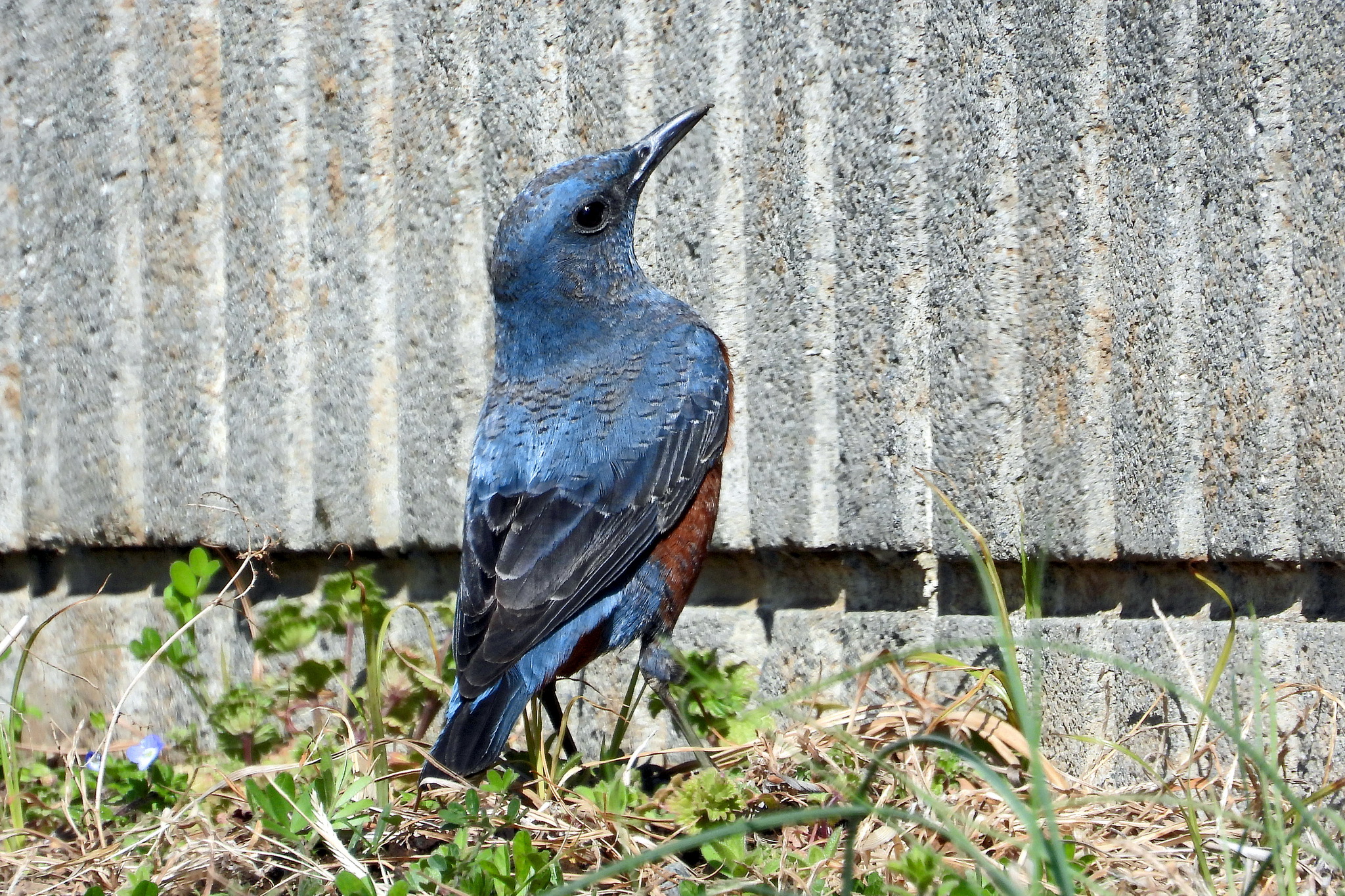 歩き始めると、民家に「イソヒヨドリ」が居るじゃないですか。
