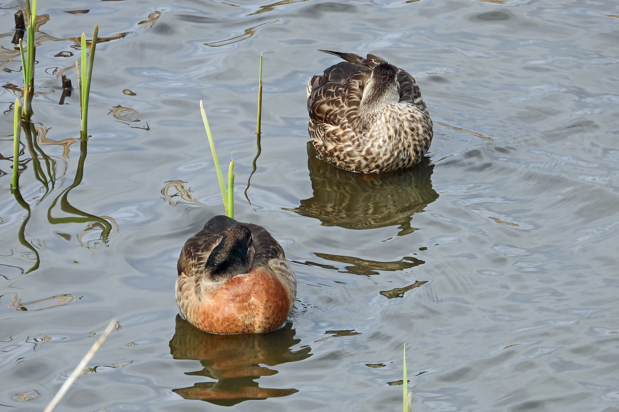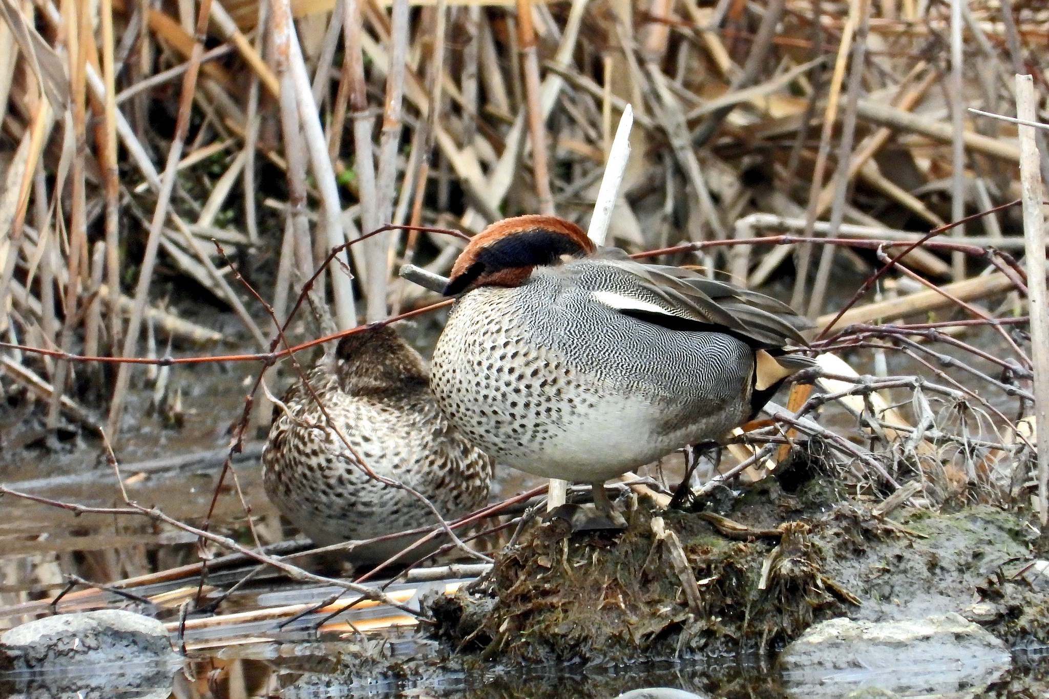 カップルらしき「コガモ」がうずくまってました。