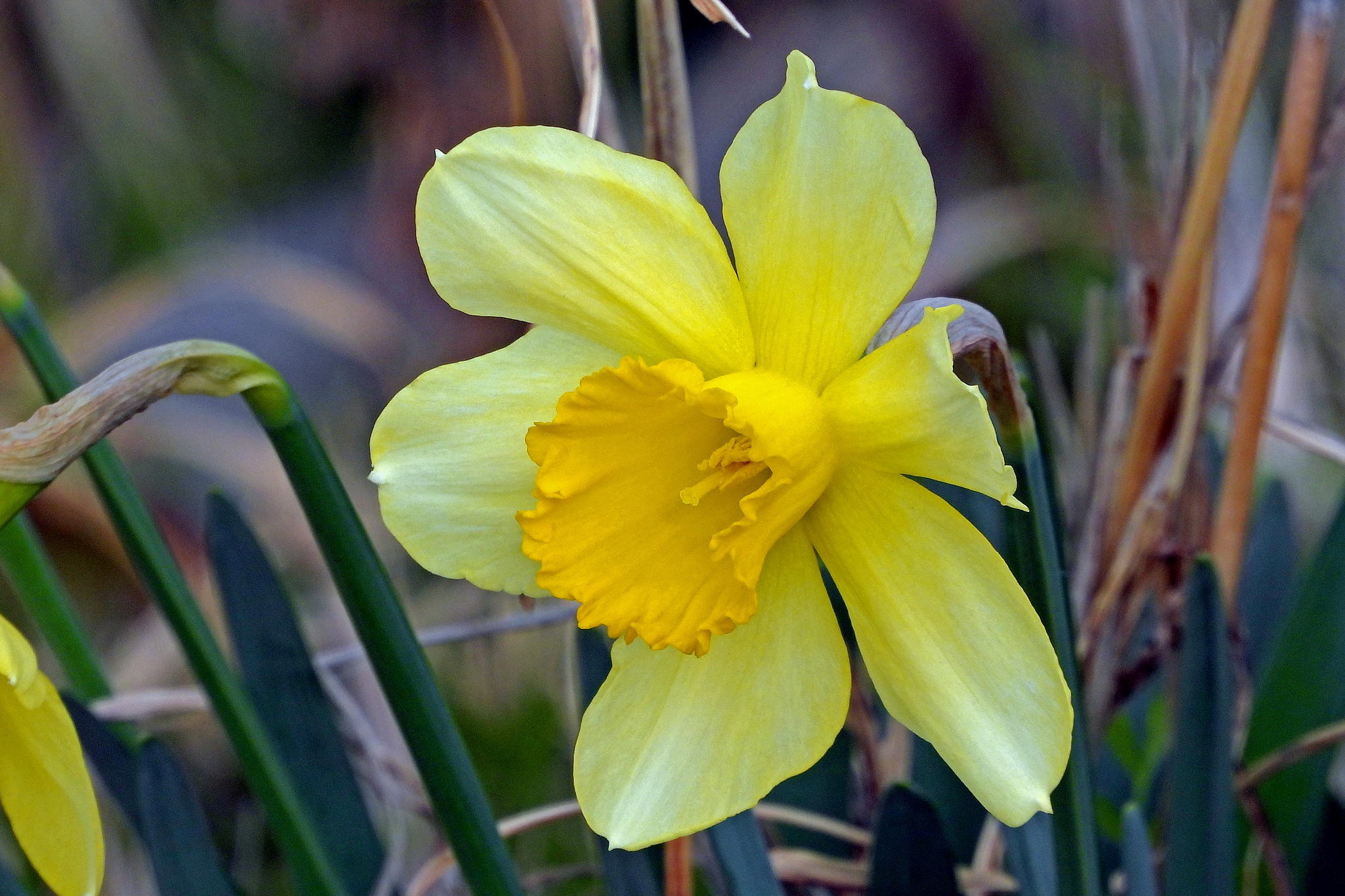 めずらしく一株あった黄色い「スイセン」です。