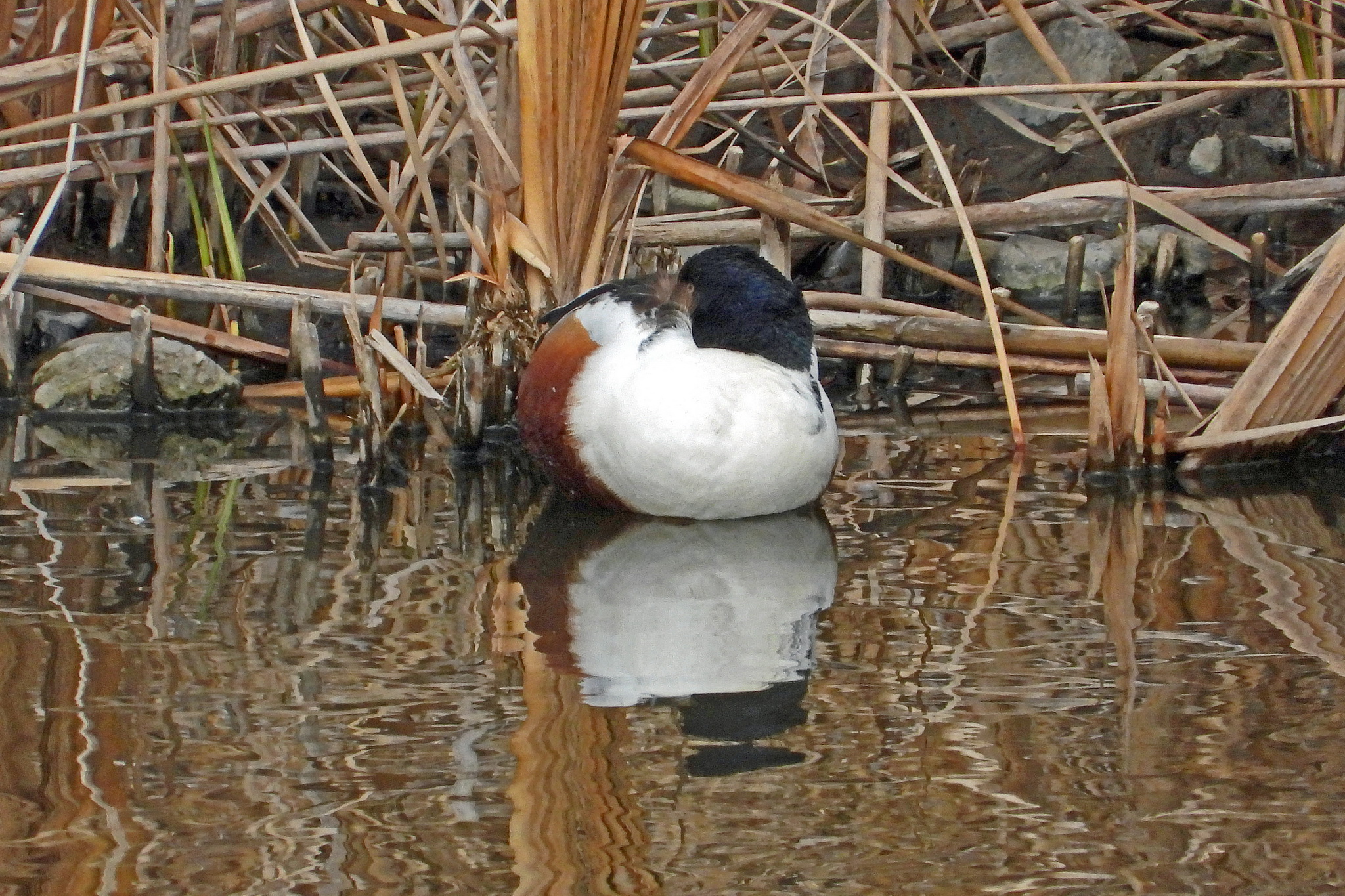 換羽完了した「ハシビロガモ」がうずくまってました。