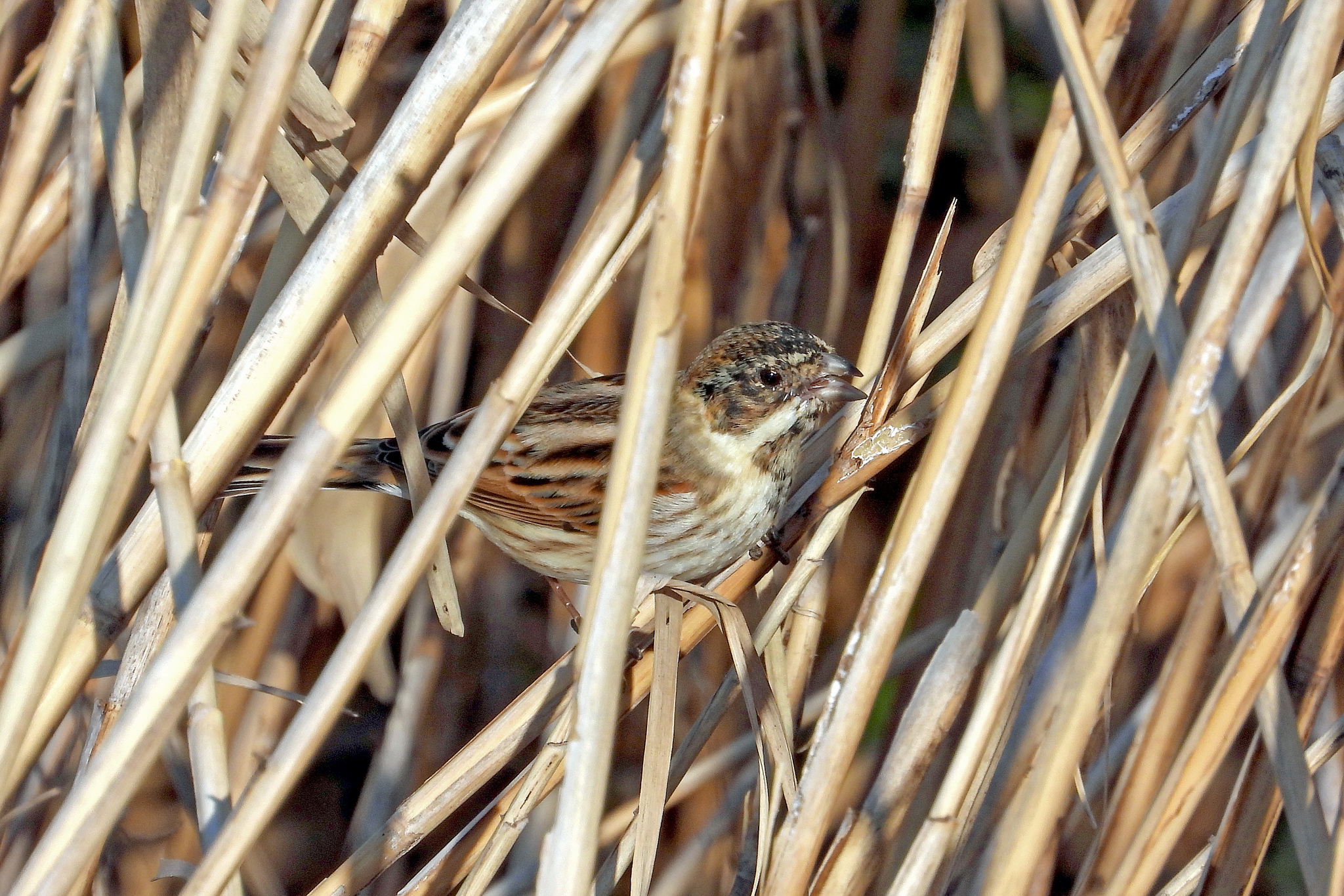 葦原の中に「オオジュリン」を発見。