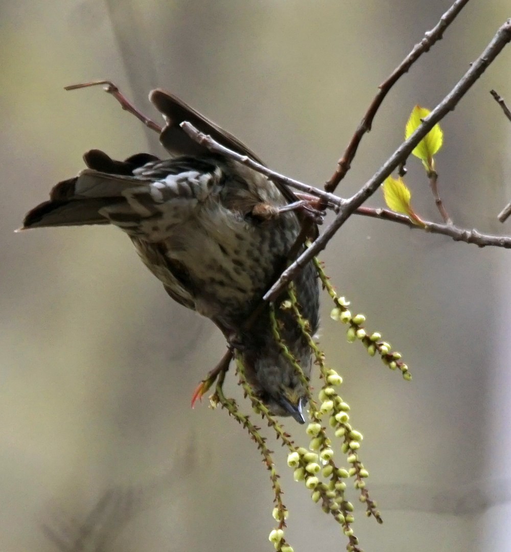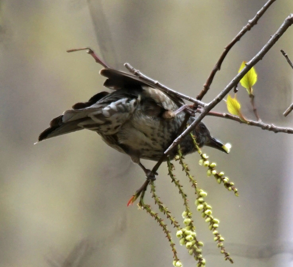 キブシの花にはヒヨドリが来て、花をパックン、パックンしていました。