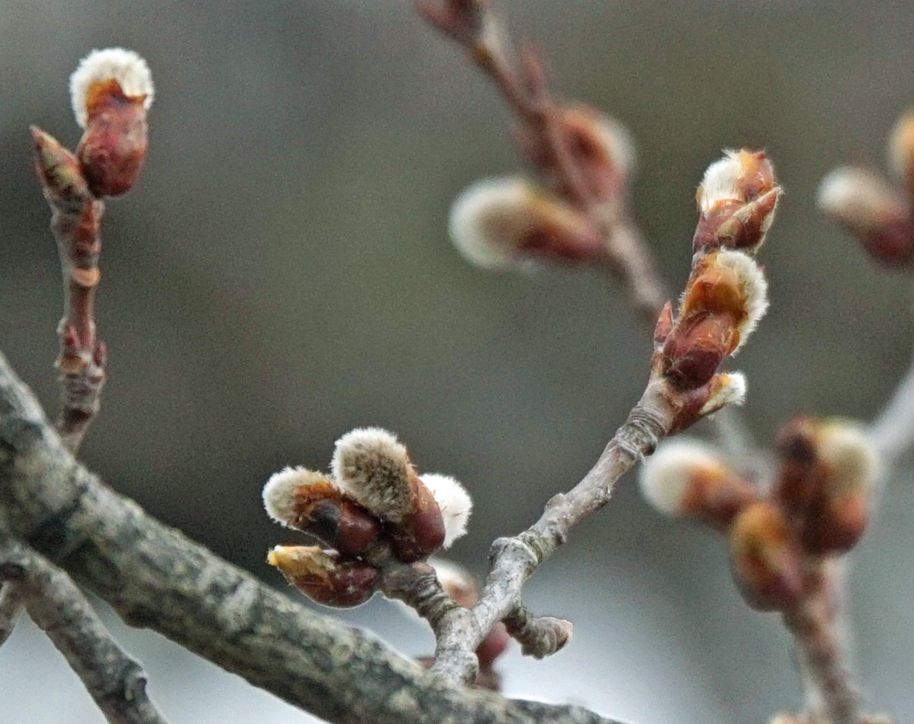 ヤマナラシは芽吹き。フワフワ毛がのぞいてきました。 長久保と比べるとずいぶん遅い芽吹きです。