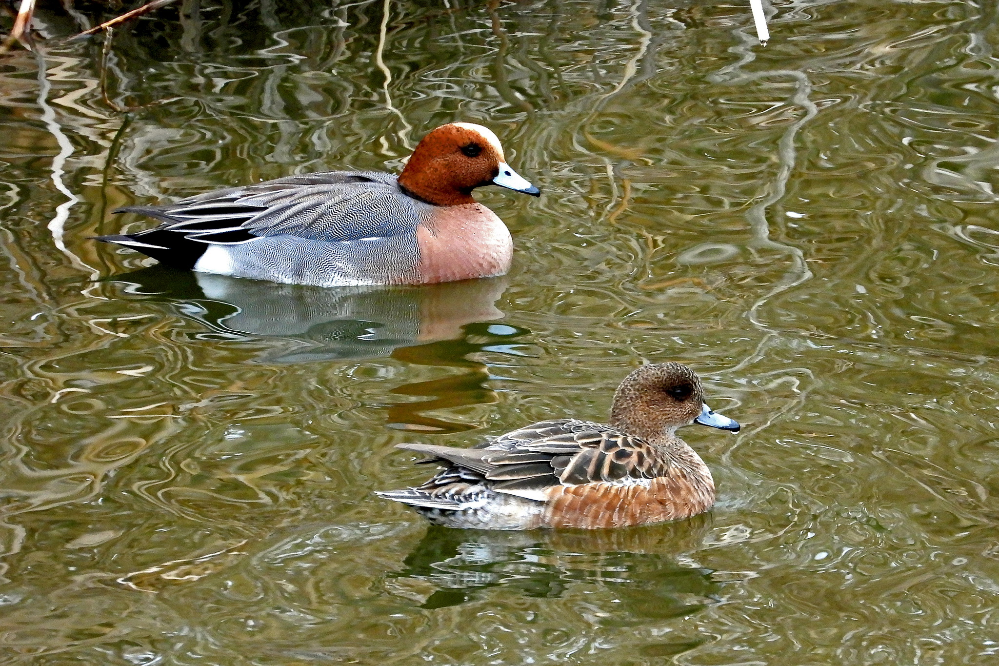 おっ、カップルらしき「ヒドリガモ」です。