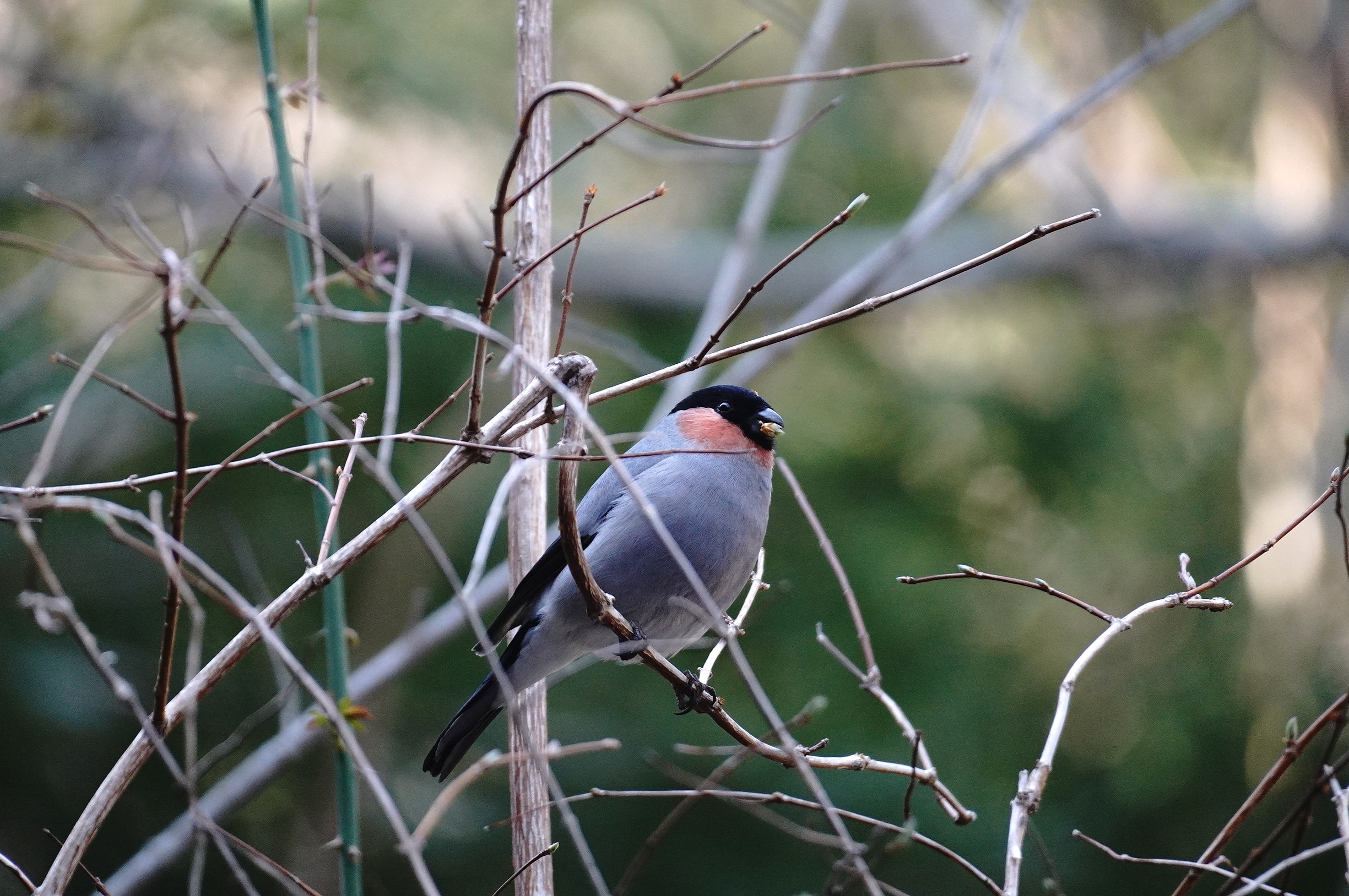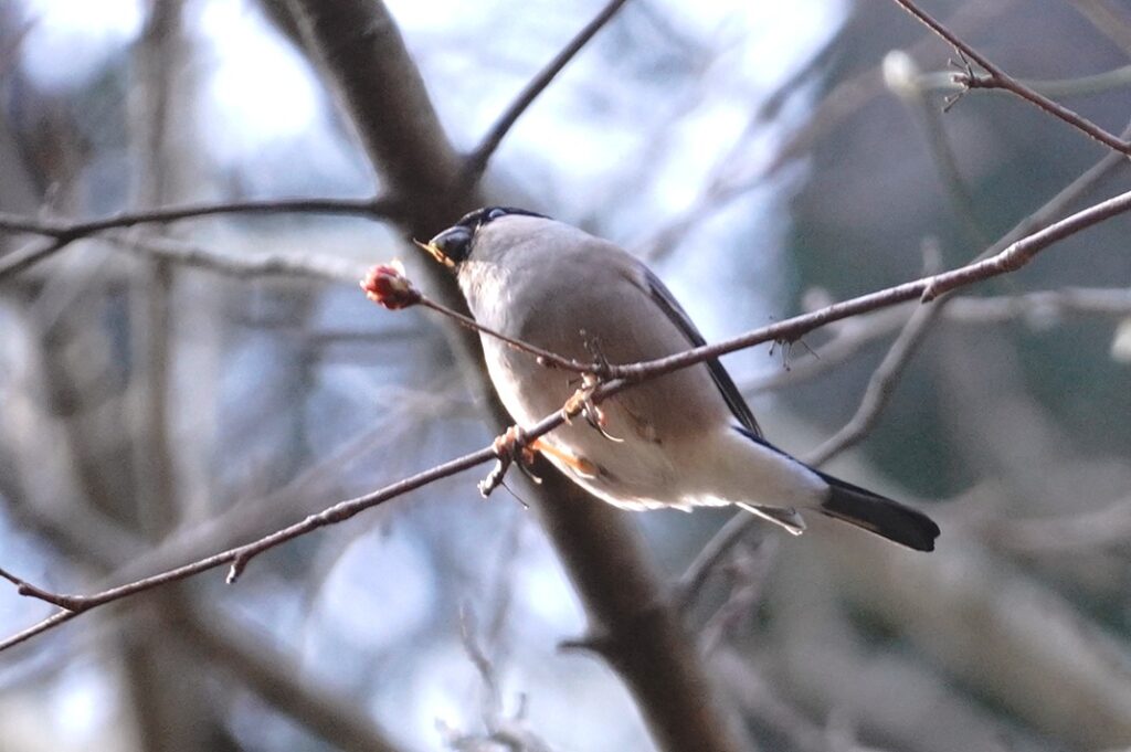 ウソ♂ 冬鳥 新芽を食べています