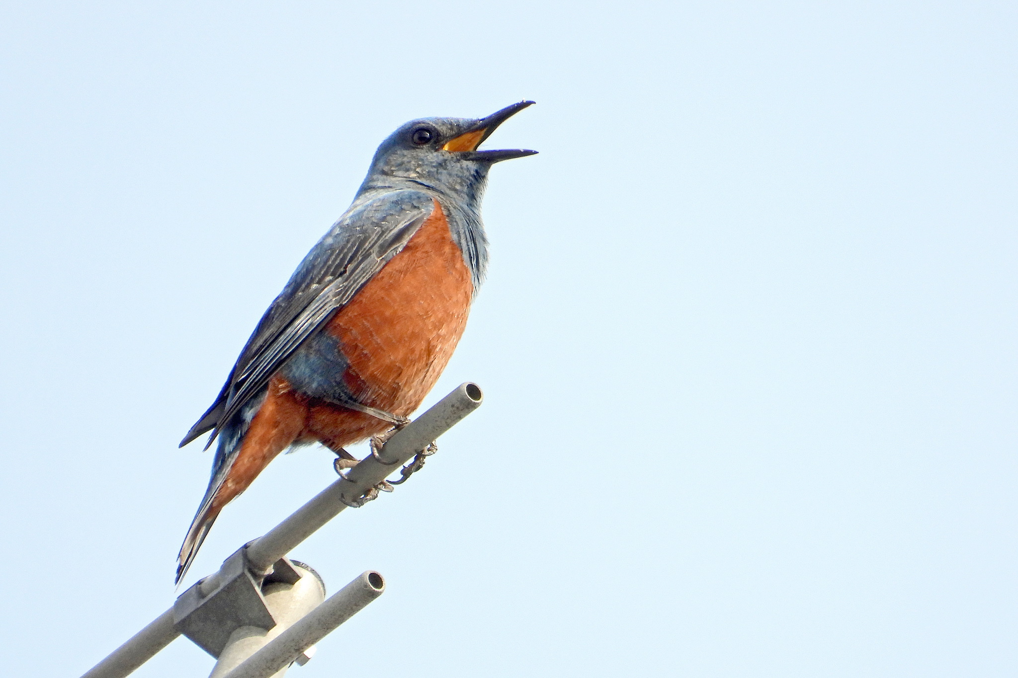上空から「イソヒヨドリ」の、綺麗なさえずりが響いてきました。