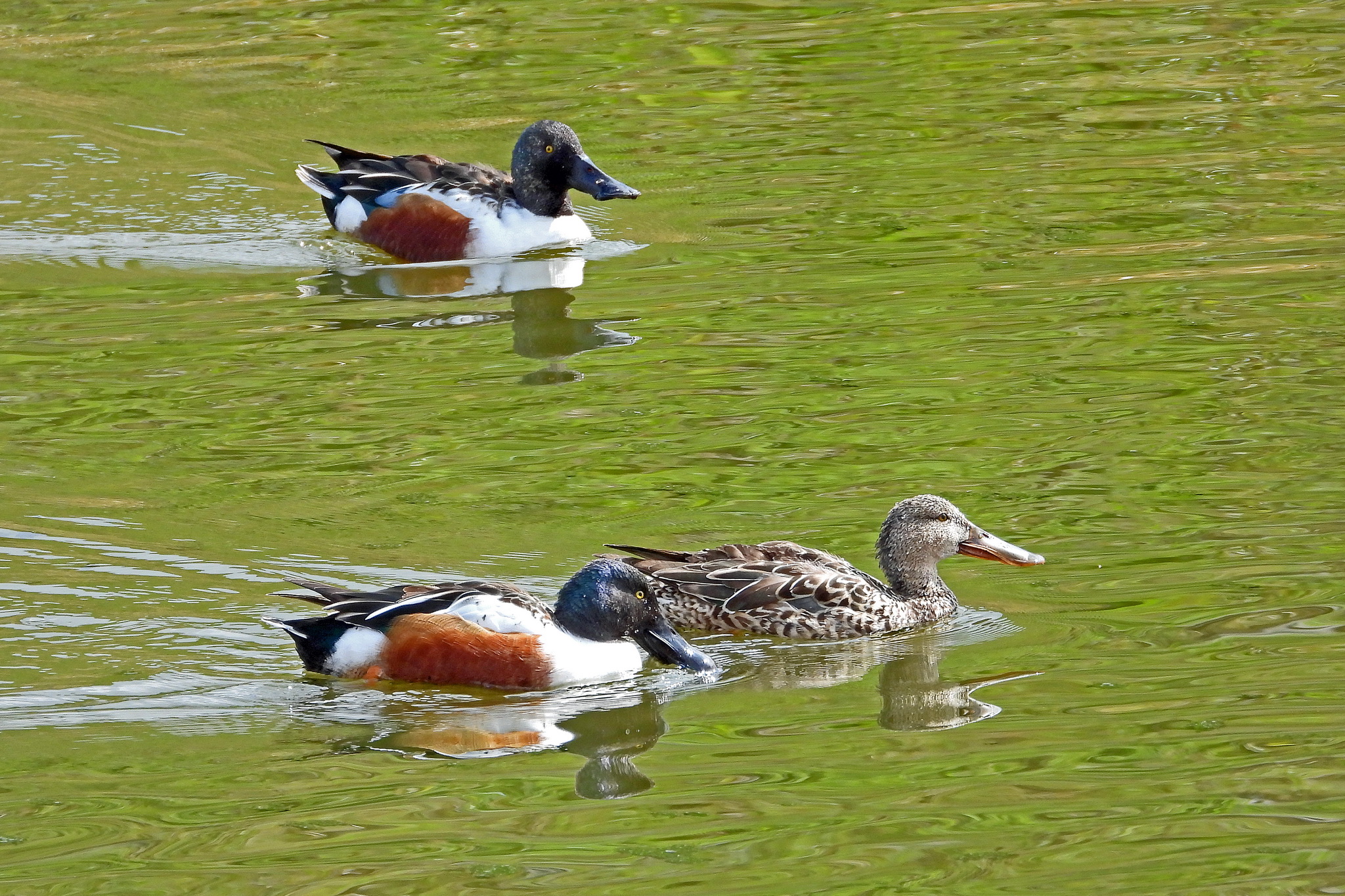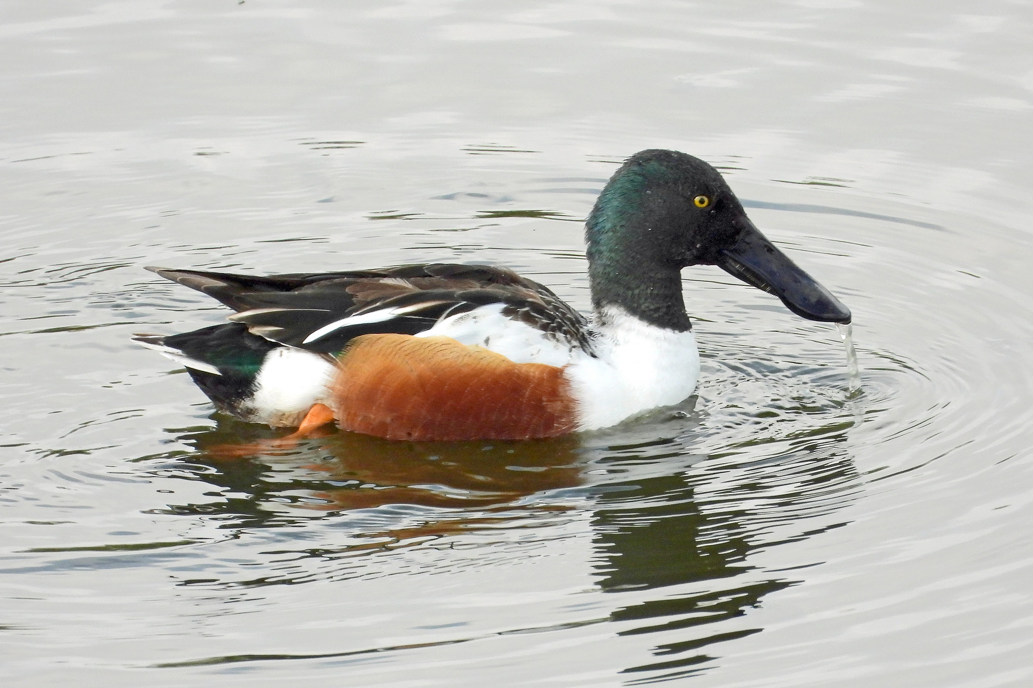 いつものように「ハシビロガモ」のオスが、朝食中でした。