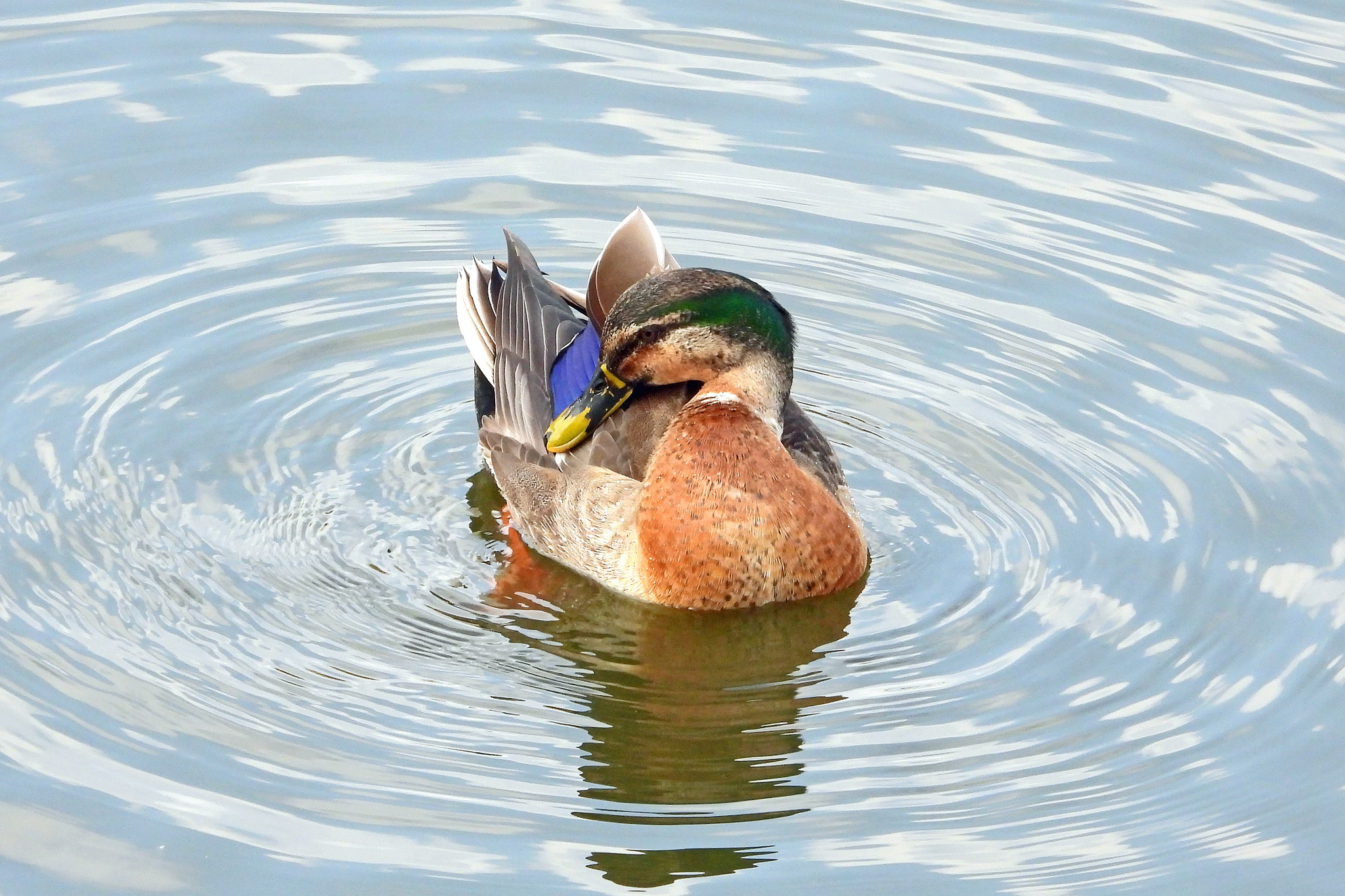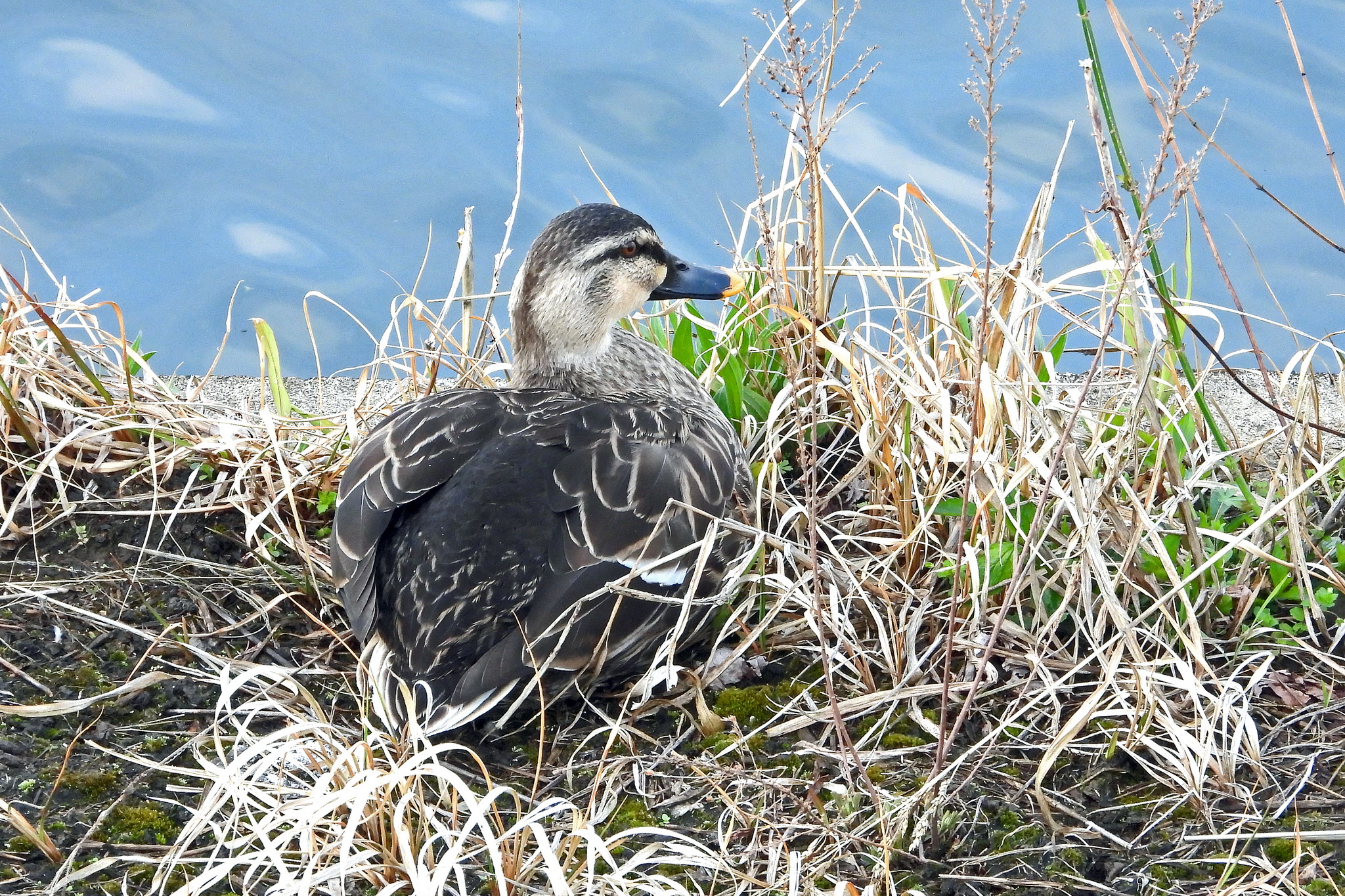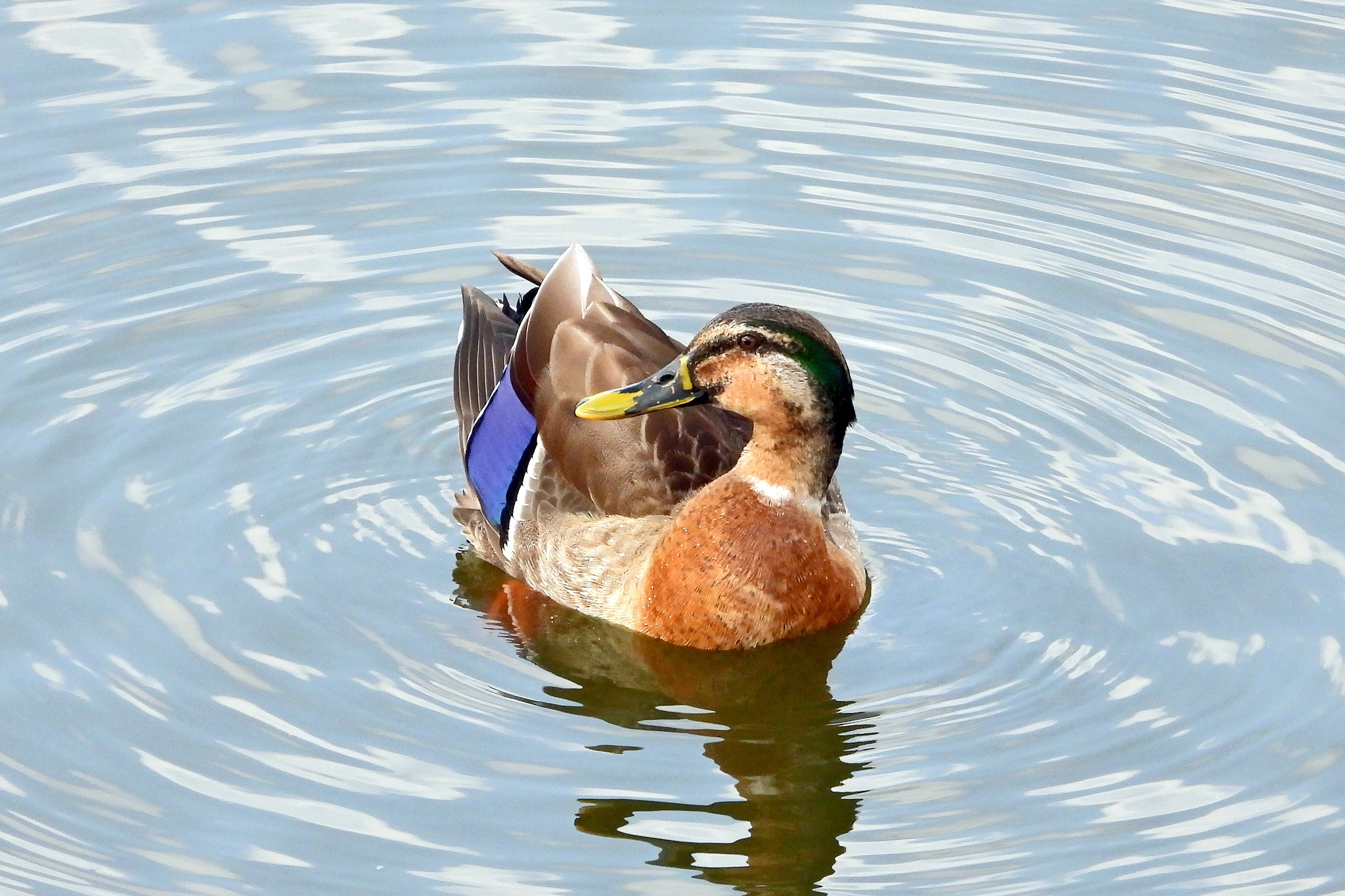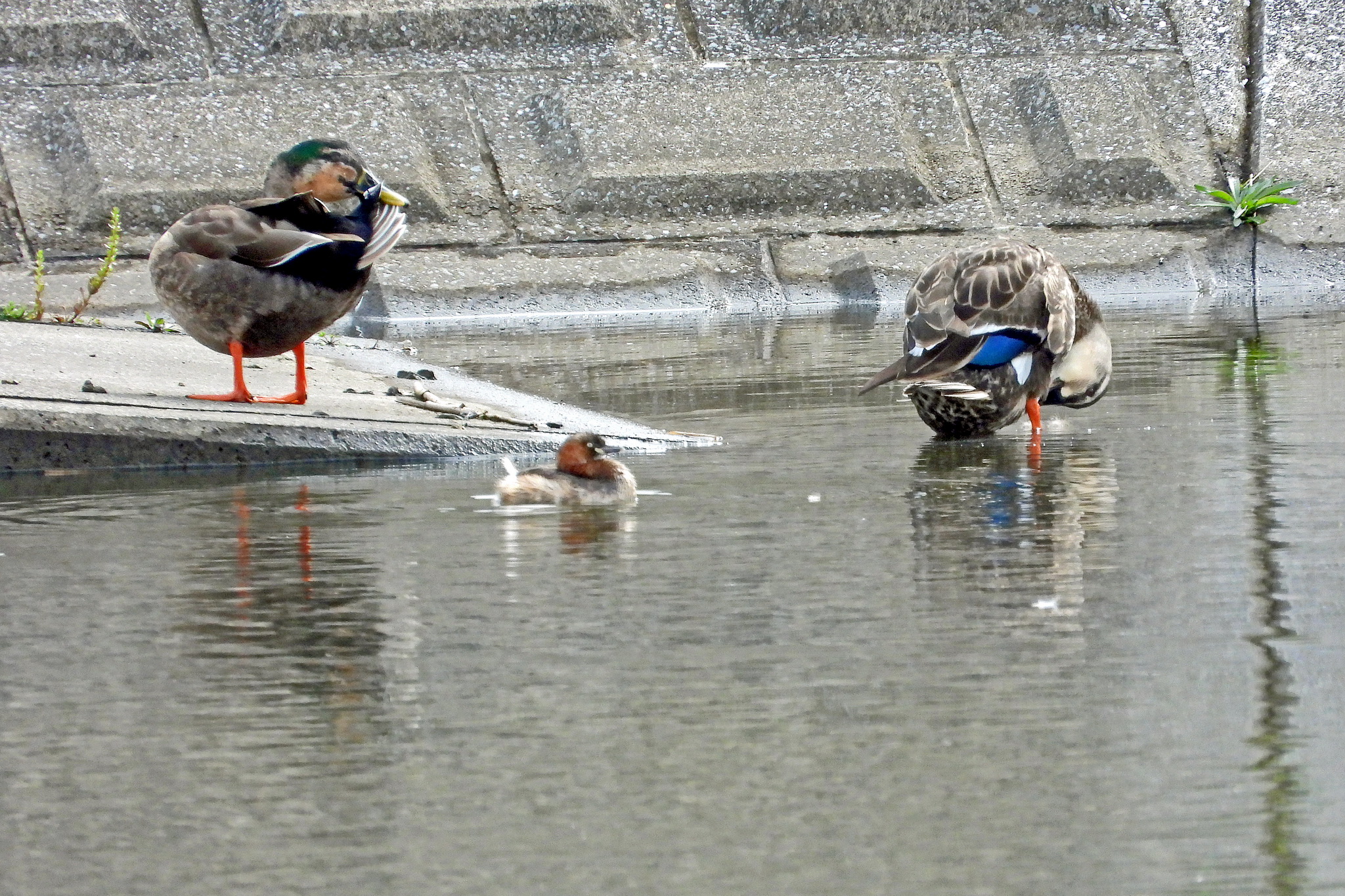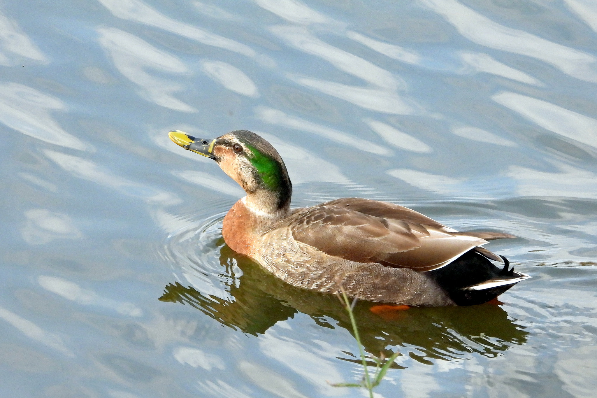 おっ、「マガモ」と「カルガモ」の交雑種が犬走に居ました。