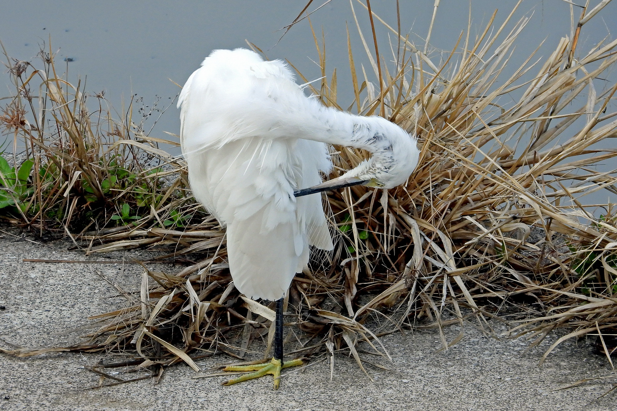 犬走の草むらの向こうに「ダイサギ」が居ました。