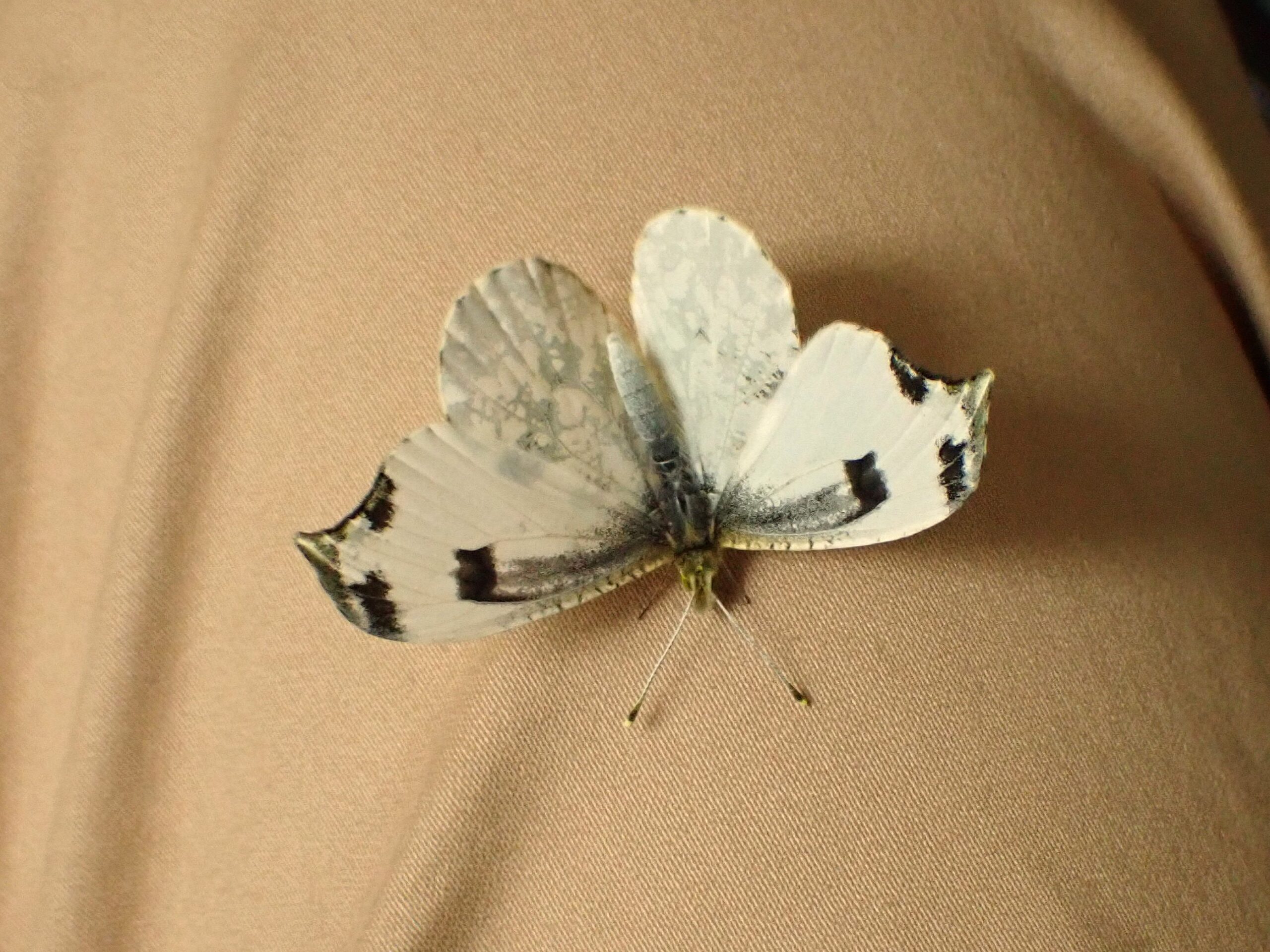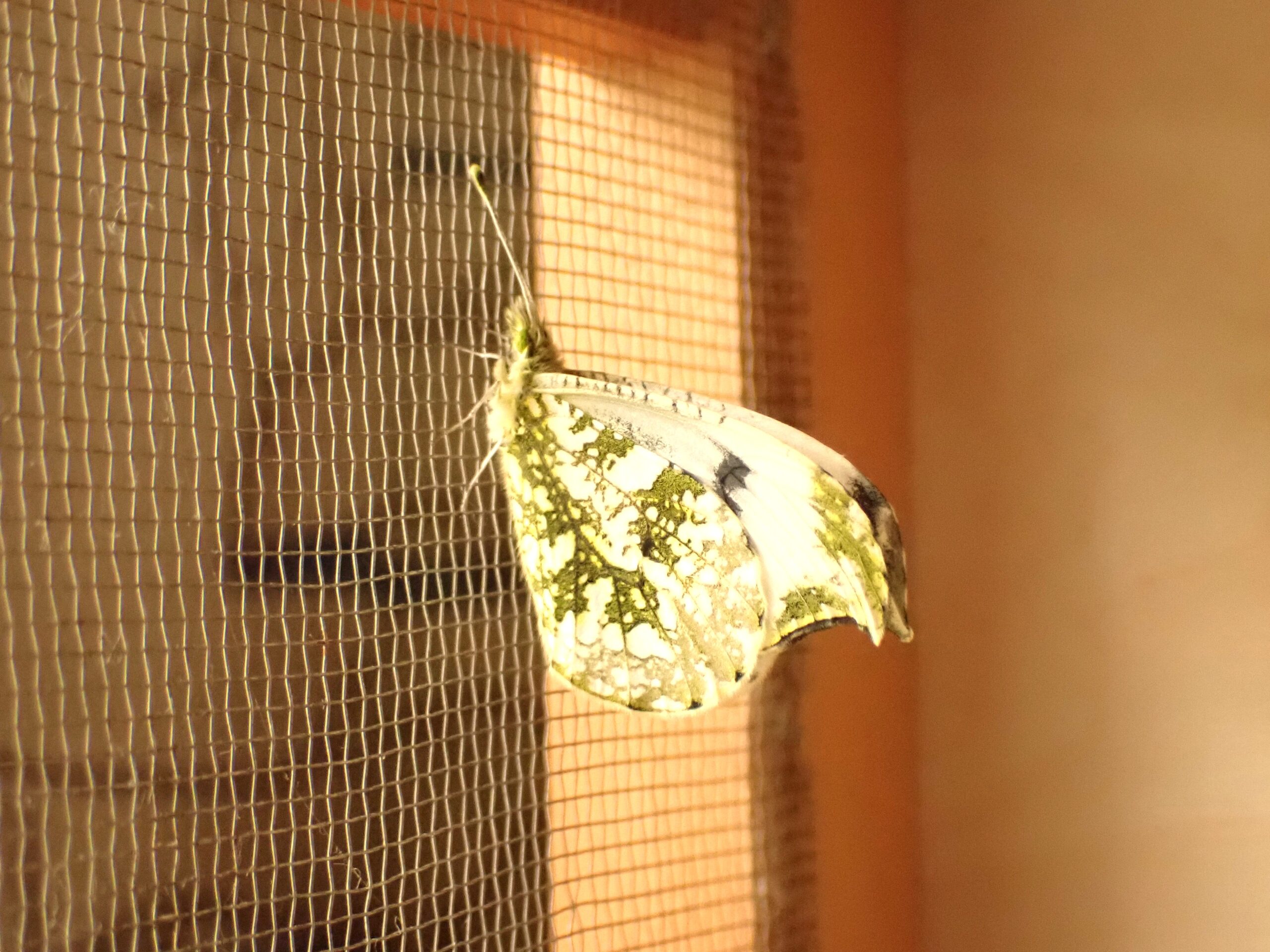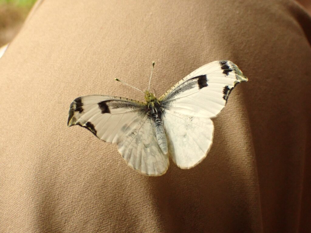 地元で3月24日にツマキチョウ♂を初見してから、毎日飼育箱天井に付いた蛹に「もう仲間が飛んでいるから、早く出ておいで」と声を掛けました。2年目だったので今年こそはと期待していたので、すごく嬉しいです。午前中は用事で出かけ昼に戻りましたが、その時は翅を開いたので女の子であることがわかりました。ツマキチョウ♀は今季初見です。