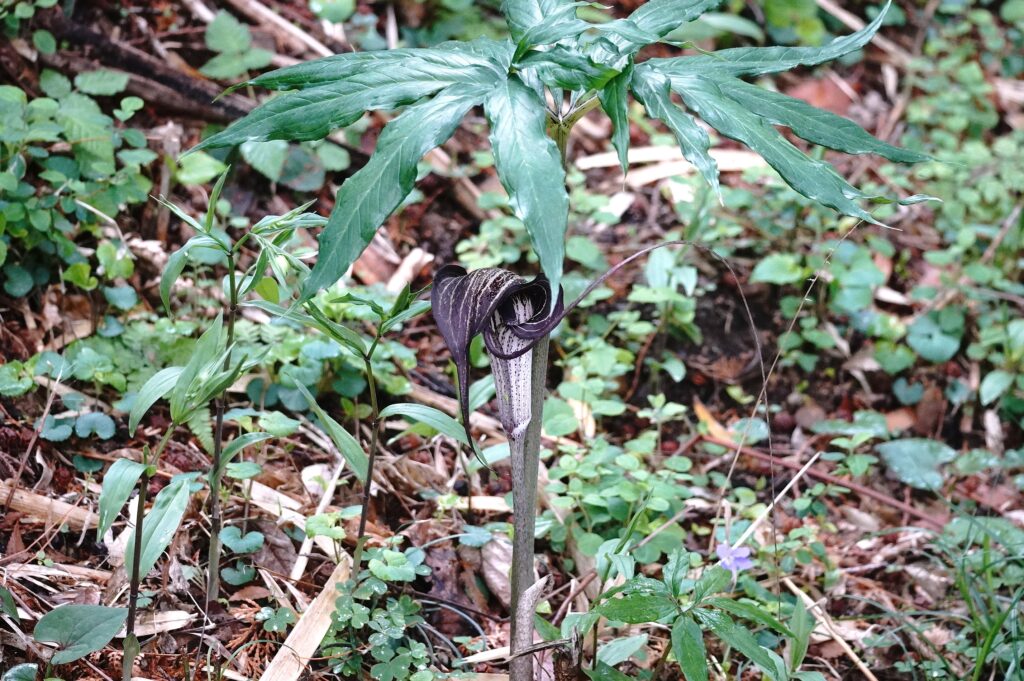 ウラシマソウの左横は、ホウチャクソウでしょうか 出番が近いですね