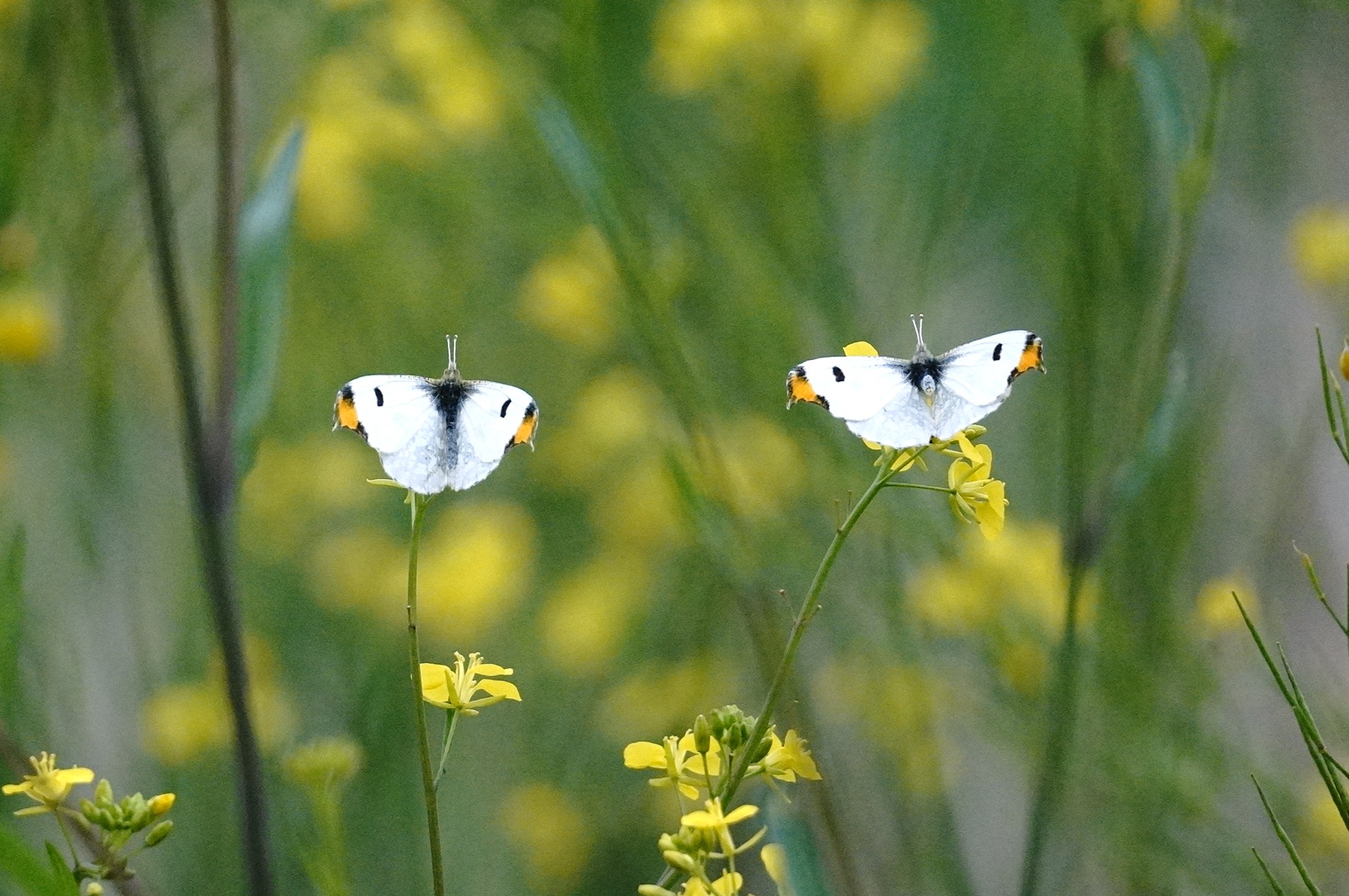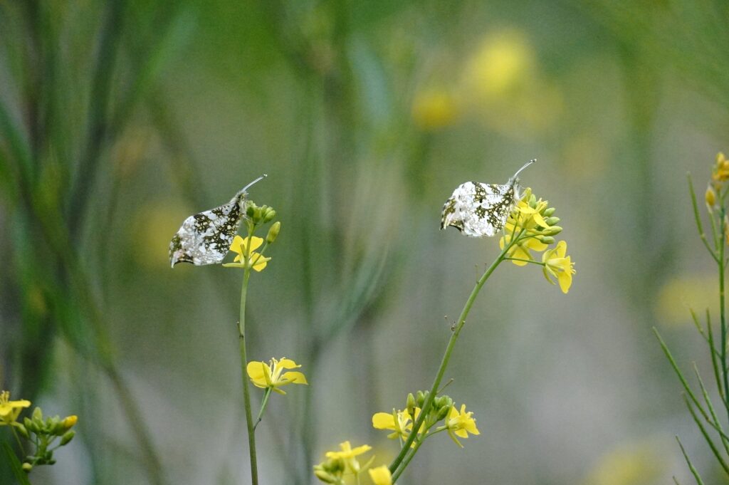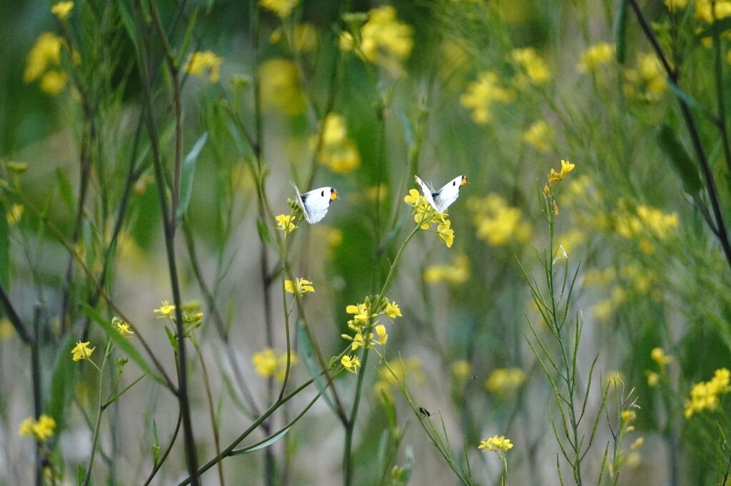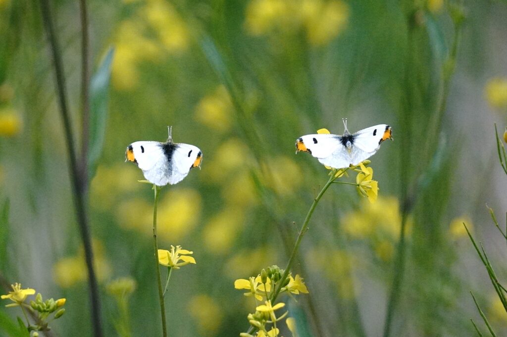 遠くにツマキチョウ♂2頭が花に止まっているのを発見