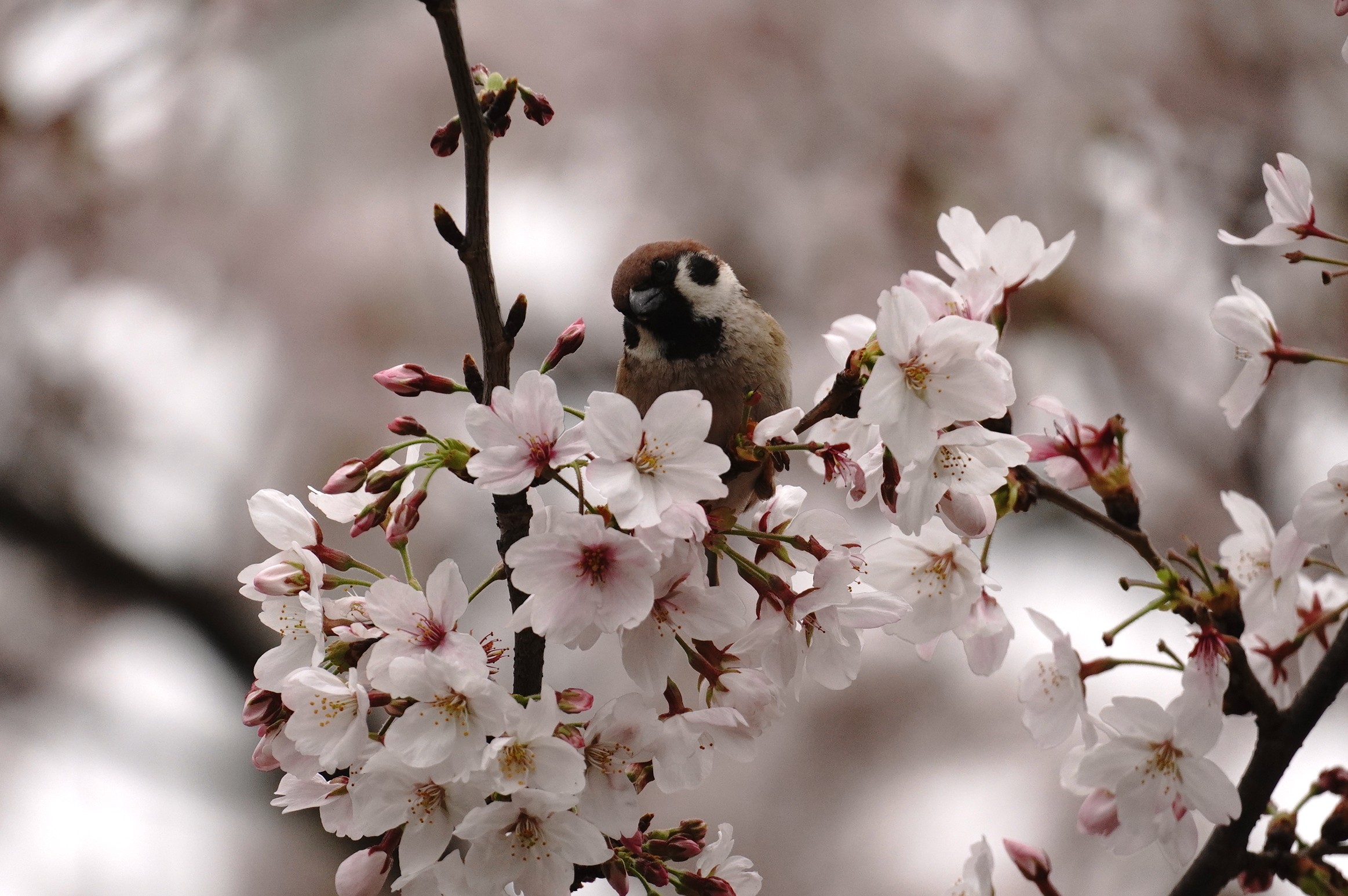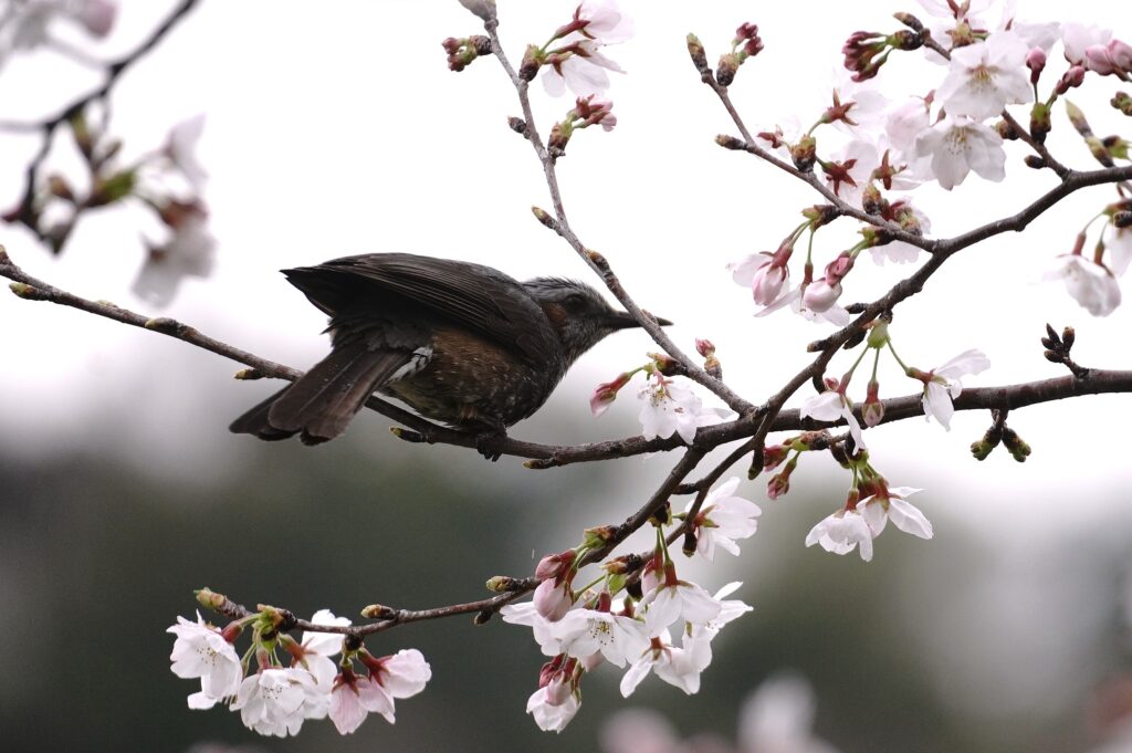 ヒヨドリも桜にやってきて蜜を吸っています お昼になり雨も降りだしたのでここで退散しました