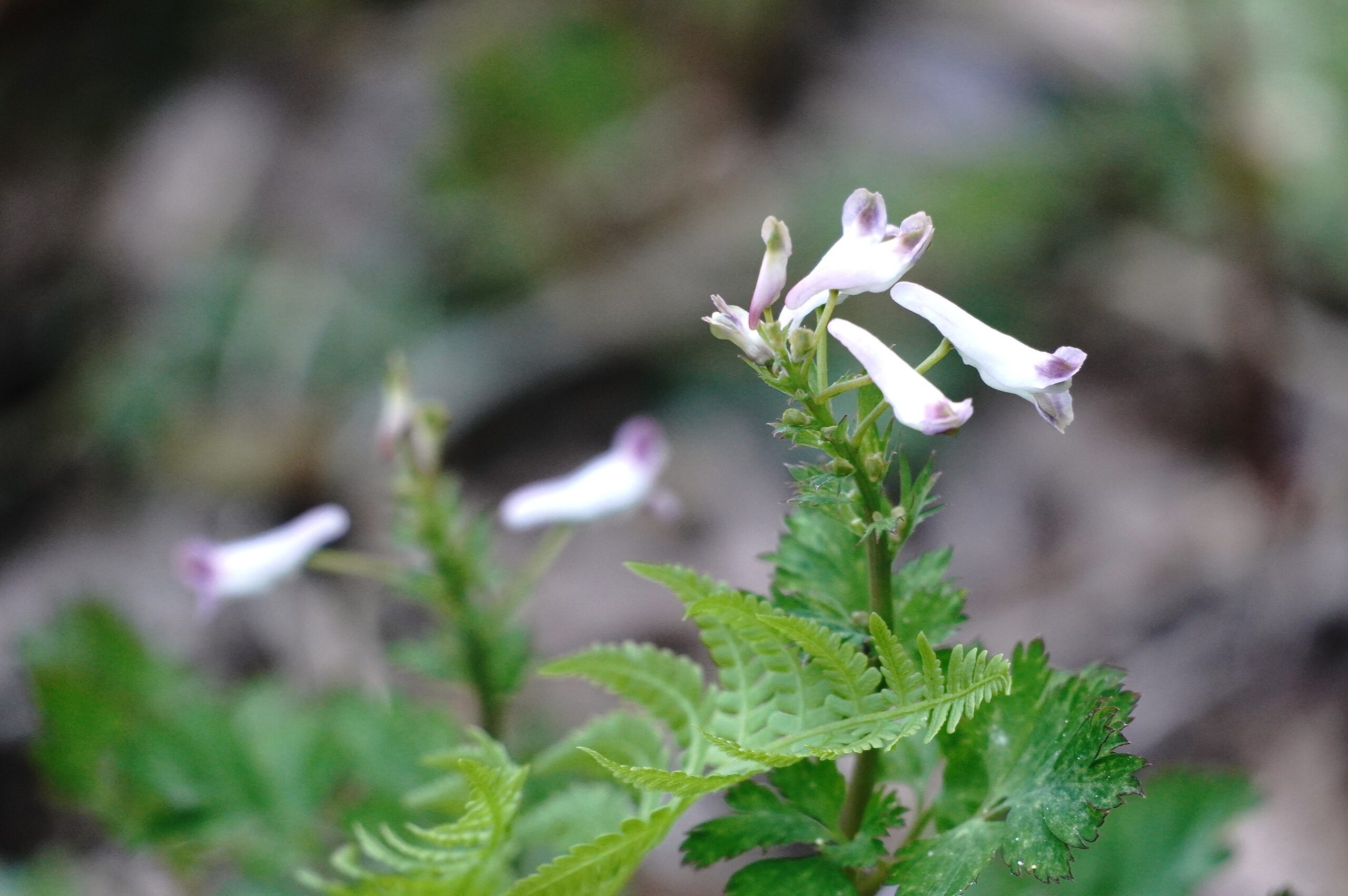ムラサキケマンの中に、白い花がありました シロヤブケマンのようです