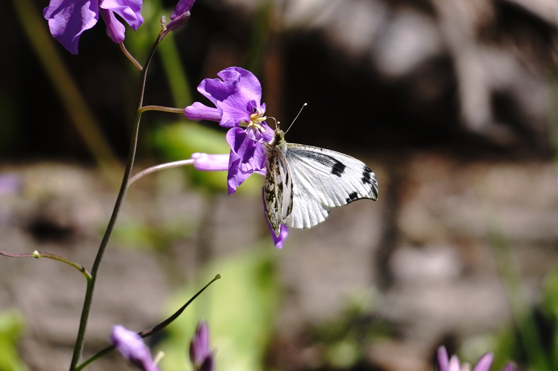 帰ろうとした時、1頭のツマキチョウ♀が飛んできました