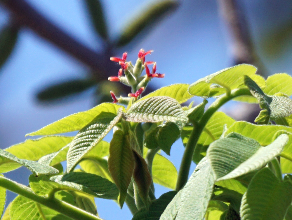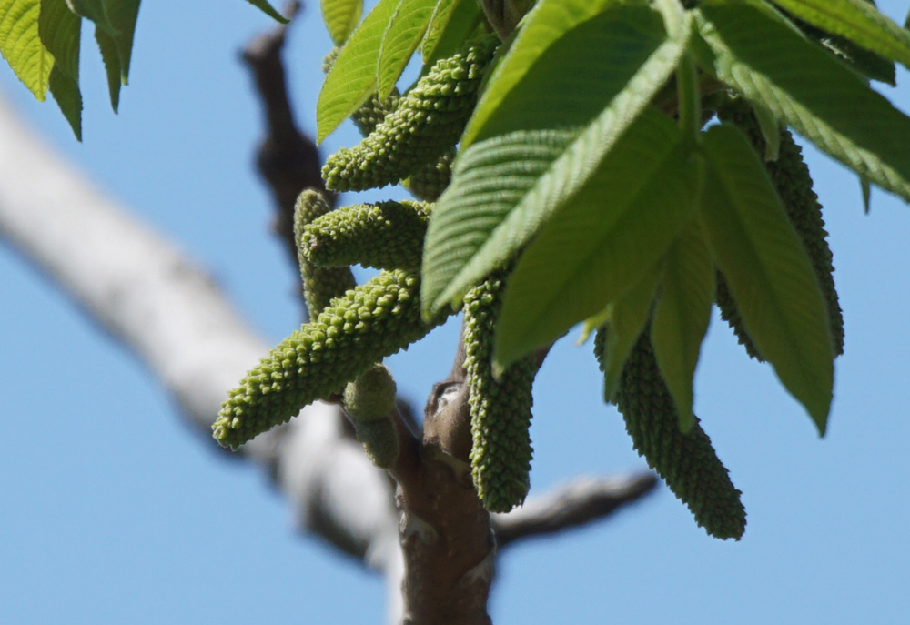 川岸で、オニグルミの雌花がきれいな色になっていました。