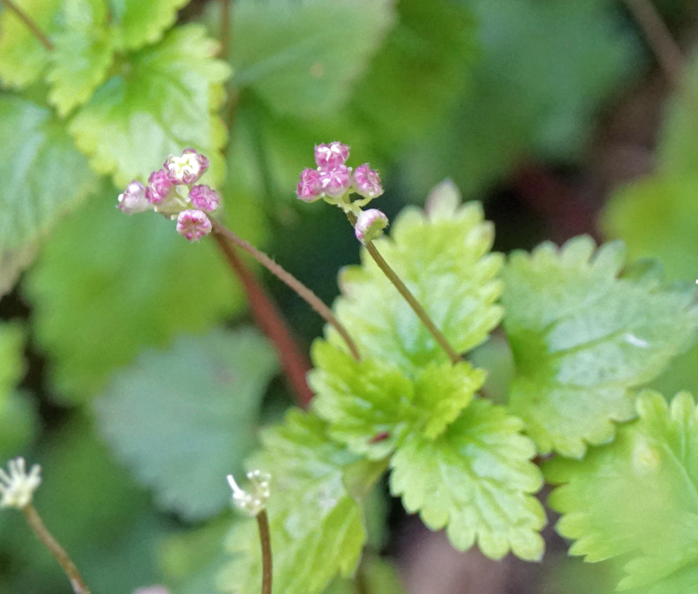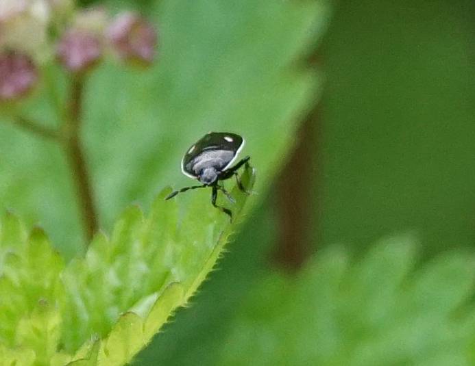 カテンソウの葉に、ツヤツヤした小さな黒い虫。 お仲間がミツボシツチカメムシでは、と。