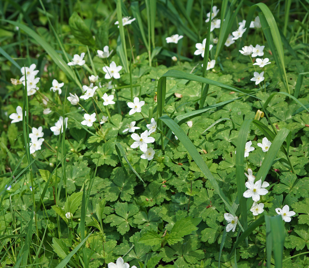 地主さんが植えたとのことですが、ニリンソウが一株、花盛り。市内にはイチリンソウの自生はあるのですが、残念ながら、ニリンソウの自生種はありません。