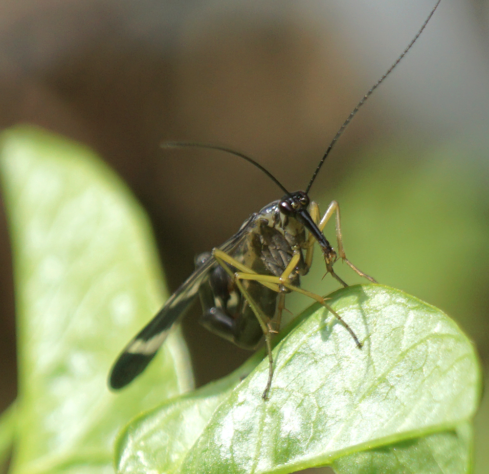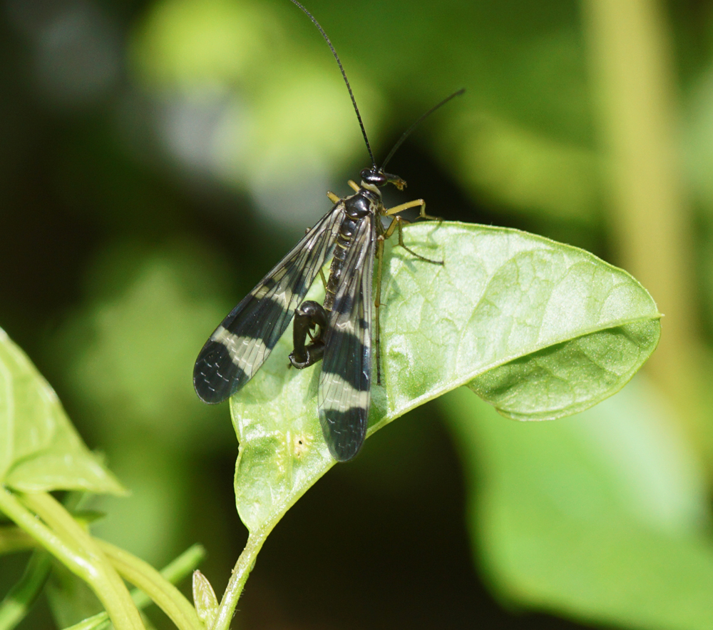 路傍の草上にヤマトシリアゲが止まっていました。 出始めは黒味が強い色で、晩夏になると黄色みが強くなるようです。