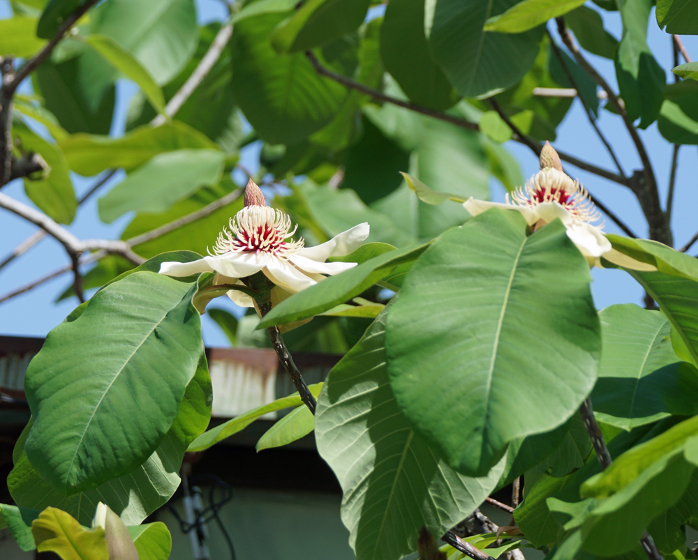帰路の途中の民家で、ホオの花が咲いていました。 出かけるたびに何かしら新しい咲き出しの花が見られます。