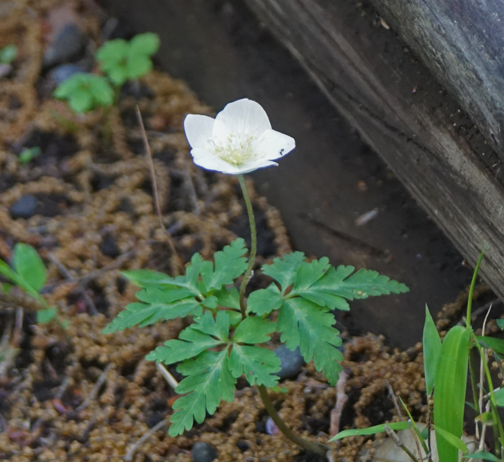 先日1株だけ花が見られたイチリンソウが、今日もう1株開花。 もう少し増えるとよいのですが。