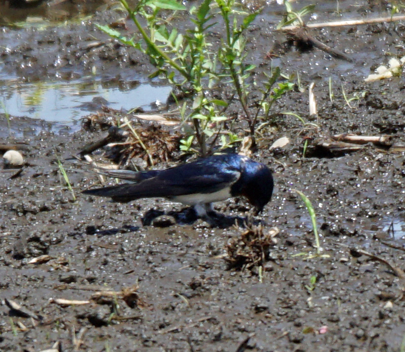 ツバメが巣材採り。 もう巣作り開始ですね。