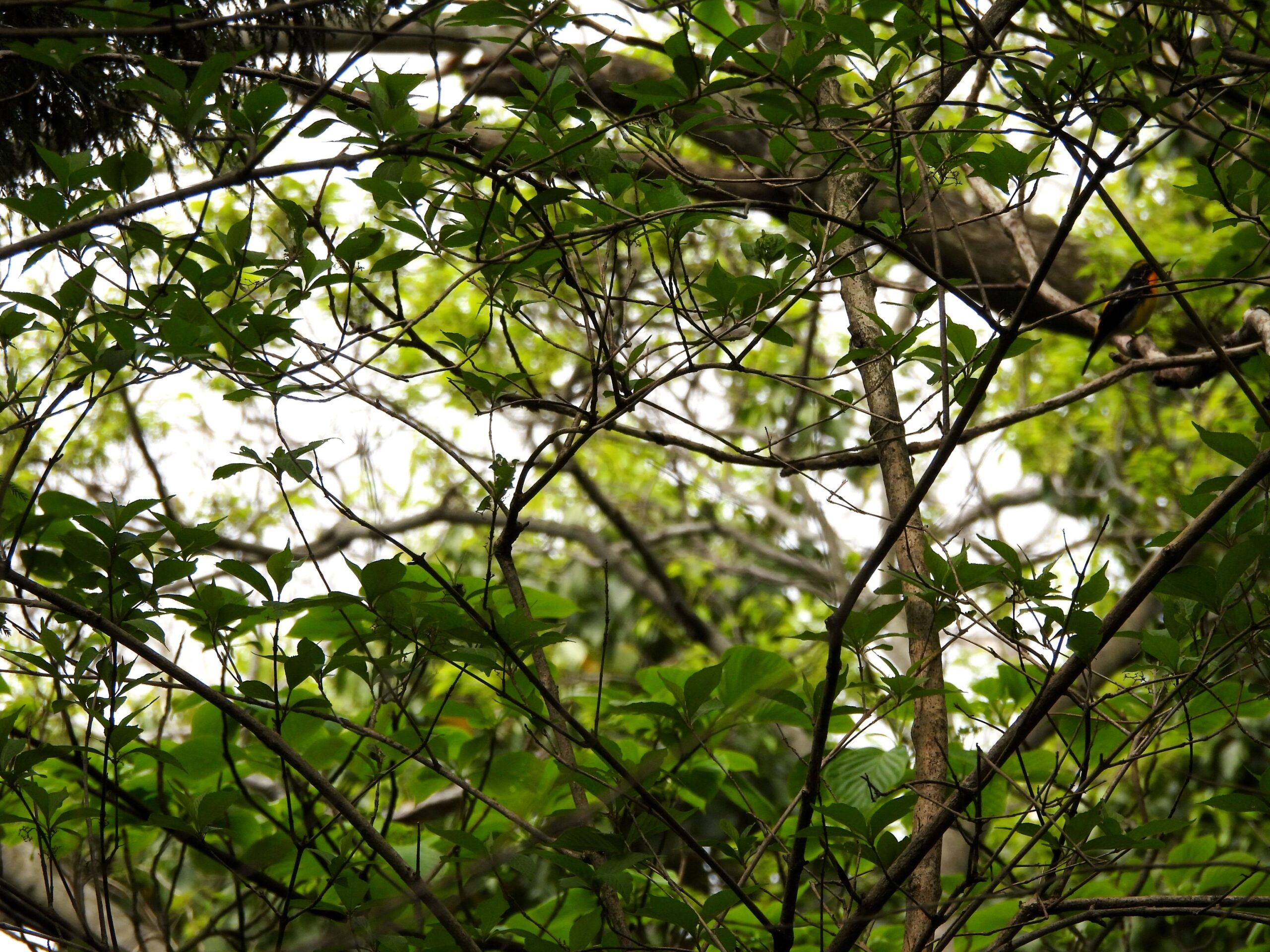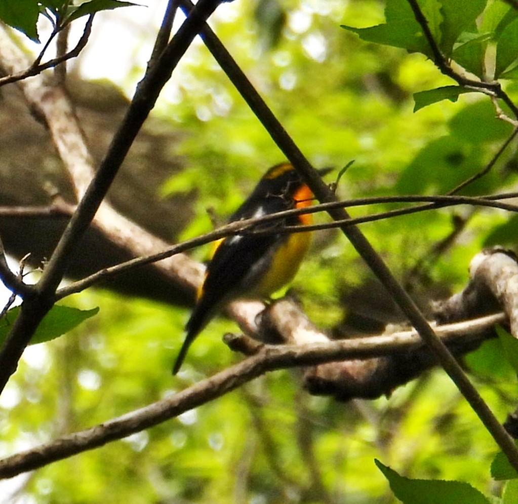 更に進んでいくと、黄色っぽい野鳥が枝の奥に見えて、キビタキか?