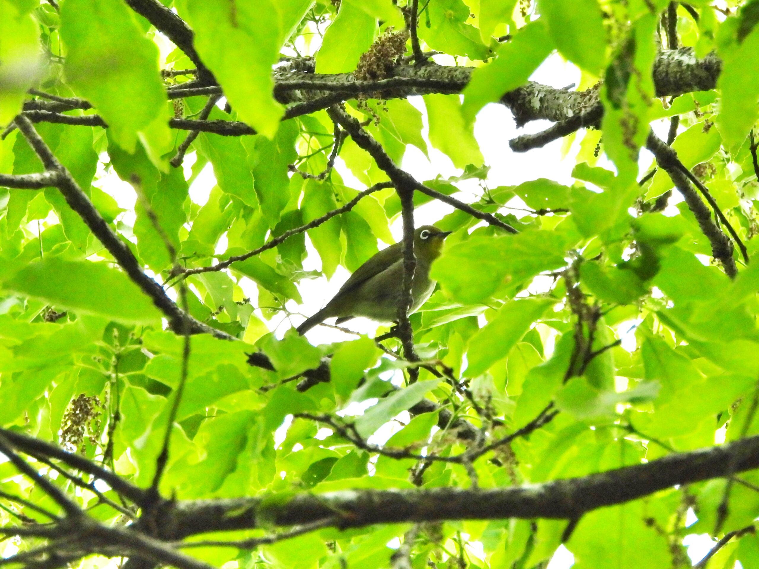 それらしいところでシャッターを押すと、メジロが写っていました。